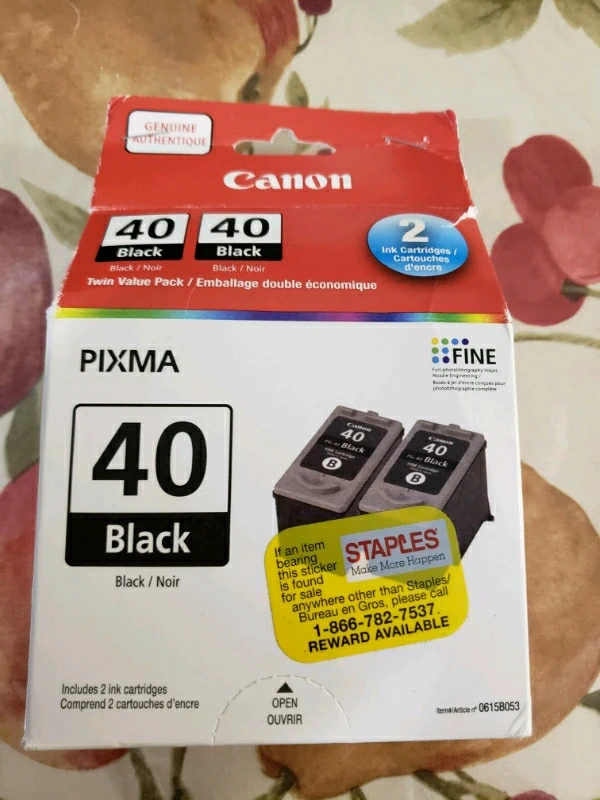 Genuine Canon ink cartridges #40 Black ⚫ cartridges. PIXMA compatible. Purchased from Staples. Pickup at Jane and Eddystone