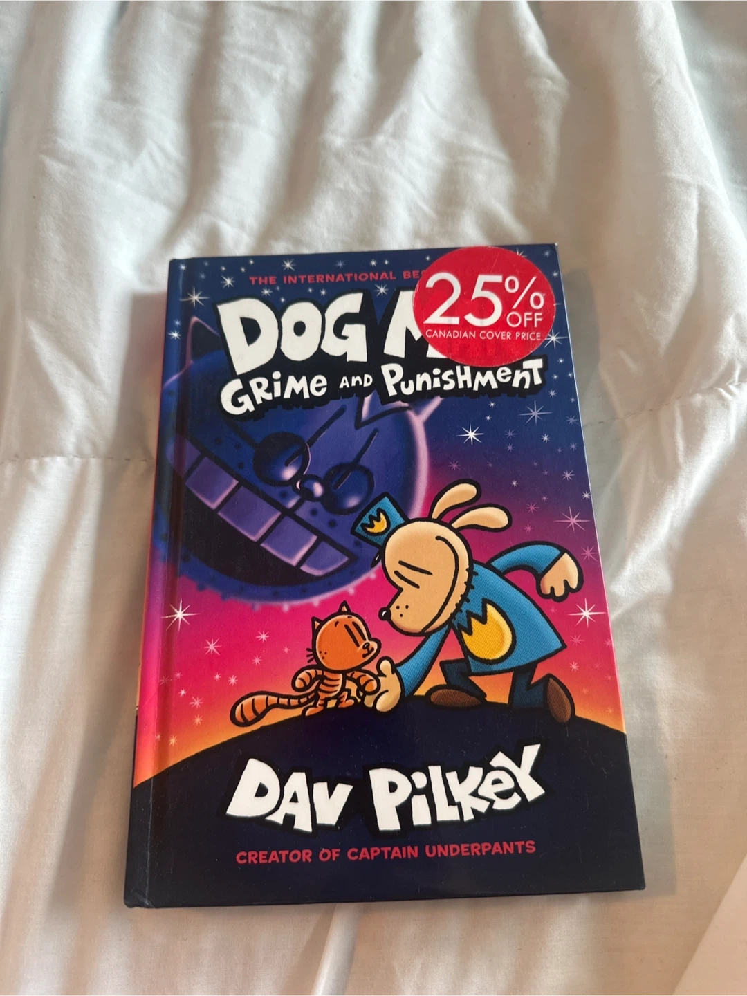 Dog Man: Grime and Punishment, by Dav Pilkey. This book is part of the popular series. It's written for young readers.