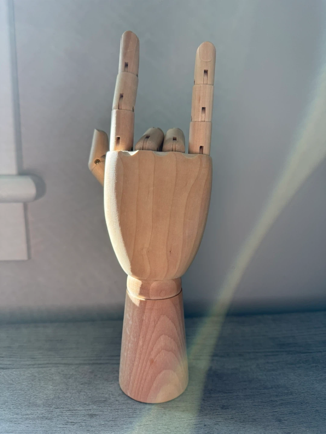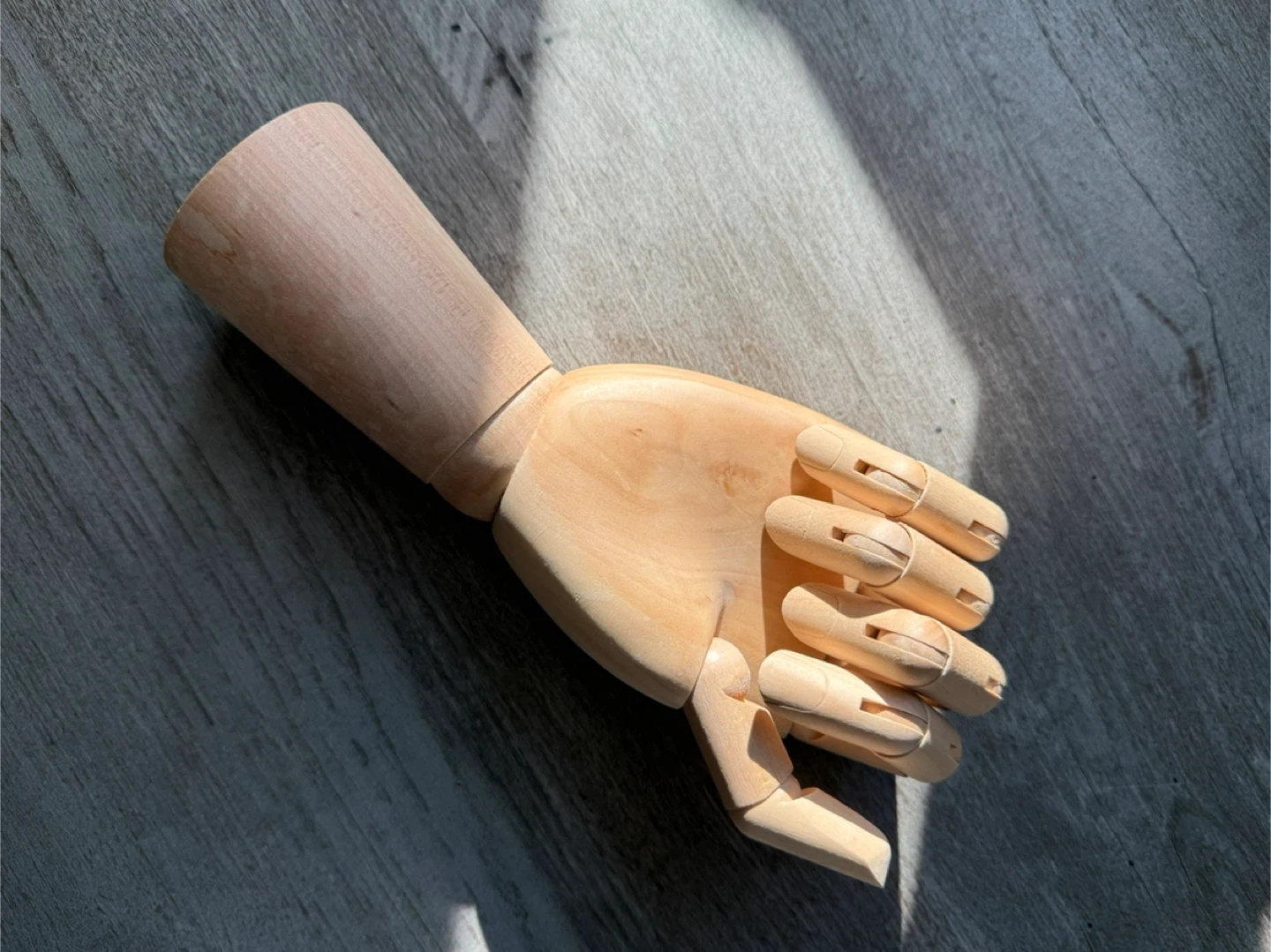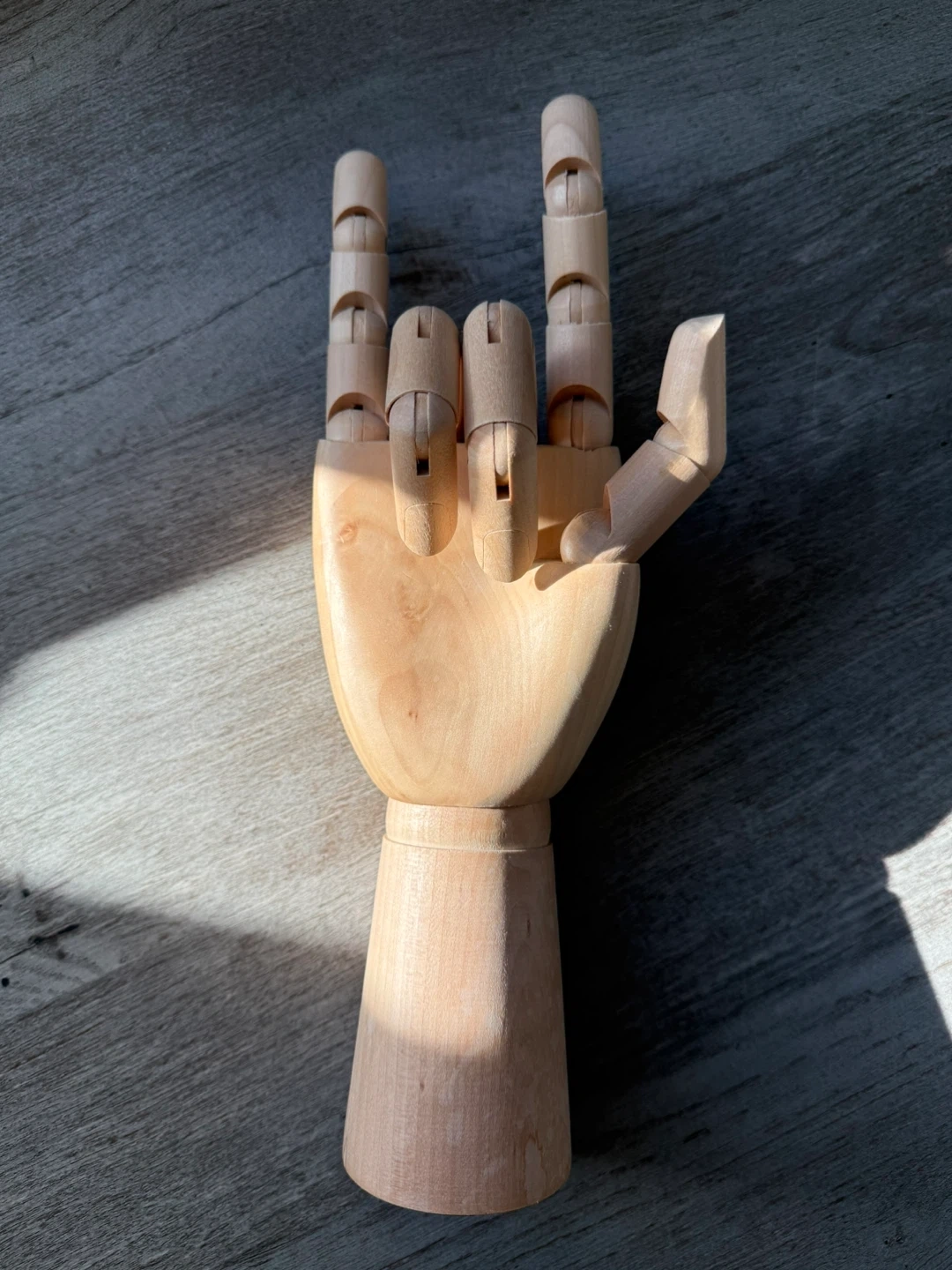 This is a wooden mannequin + jewelry hand. It's made of (potentially solid beech) and has articulated fingers. Perfect for artists or as a unique desk accessory!