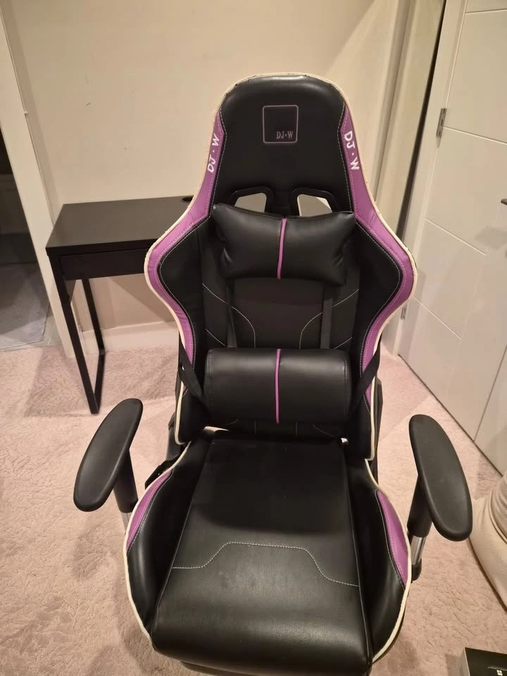Features a footrest, lumbar support, and neck support. It also fully reclines. Let me know if you're interested!