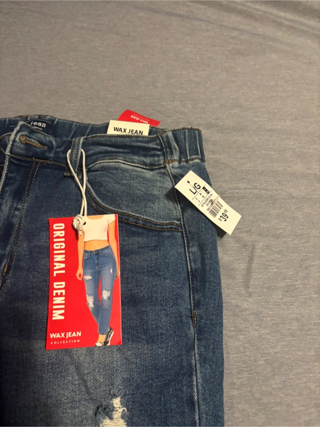 I'm selling a pair of Wax Jean Original Denim jeans! They're a size large and in great condition. The tag shows they were originally $39.99