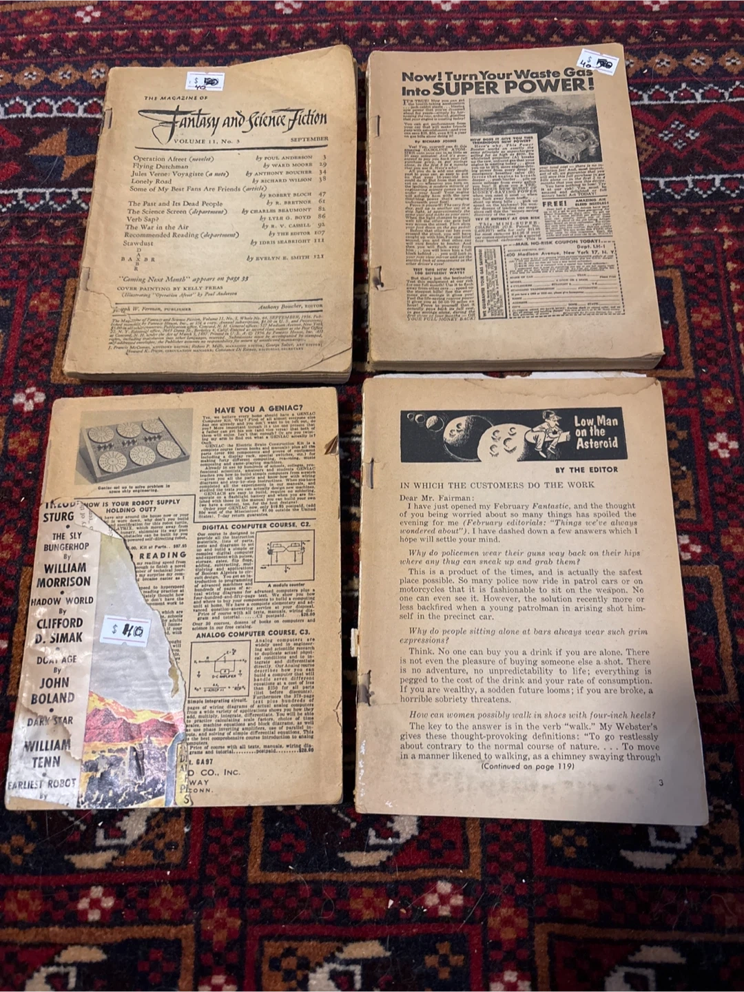 Selling a collection of vintage science fiction magazines. These are great for collectors or anyone interested in the history of science fiction literature. They show signs of age, but are still readable and interesting!