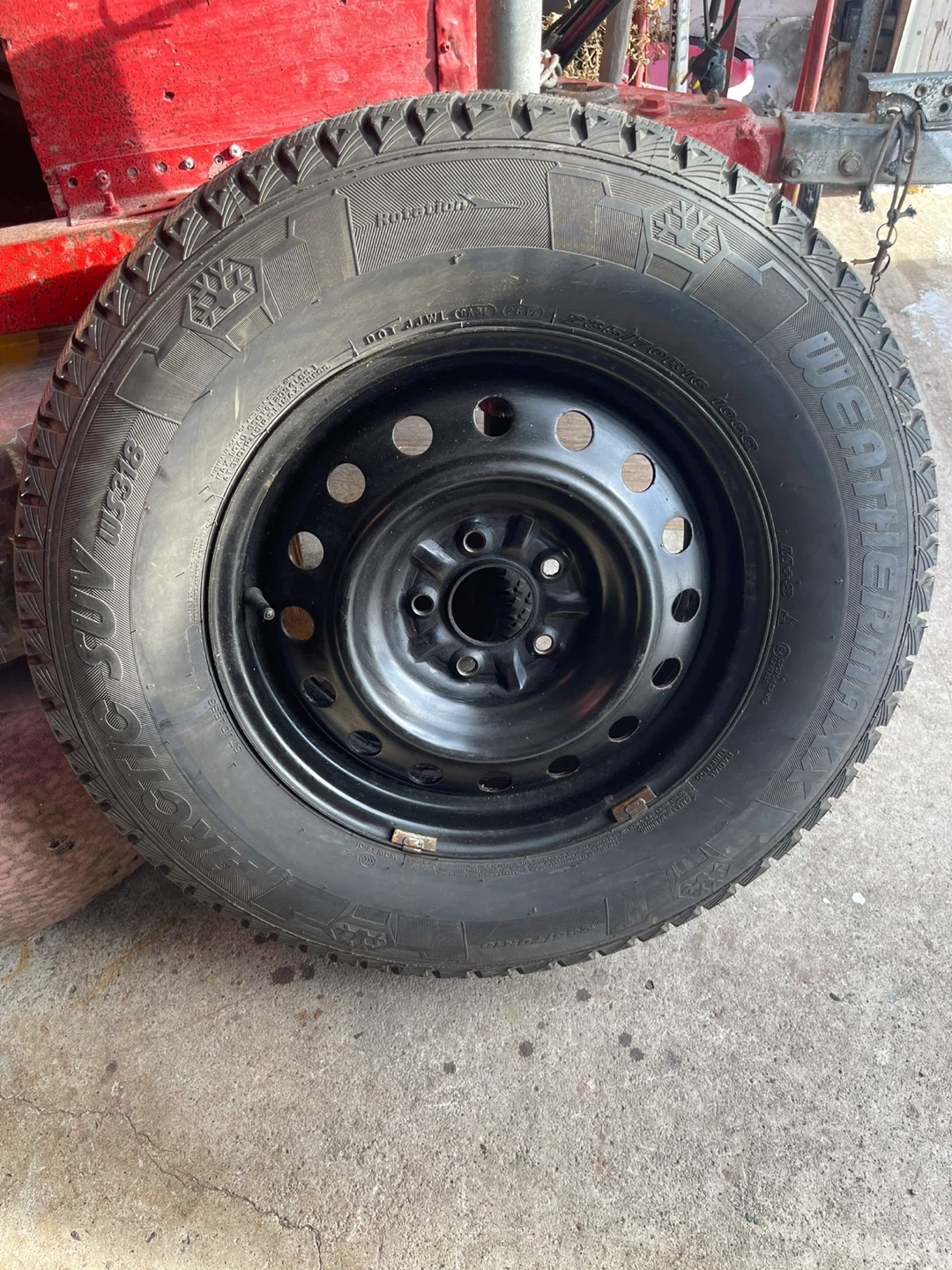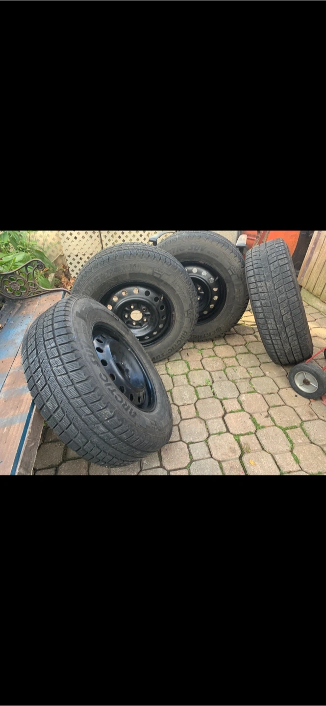 Selling a set of WeatherMaster Arctic SUV winter tires. The size is 235/70R16. They are mounted on black steel rims.