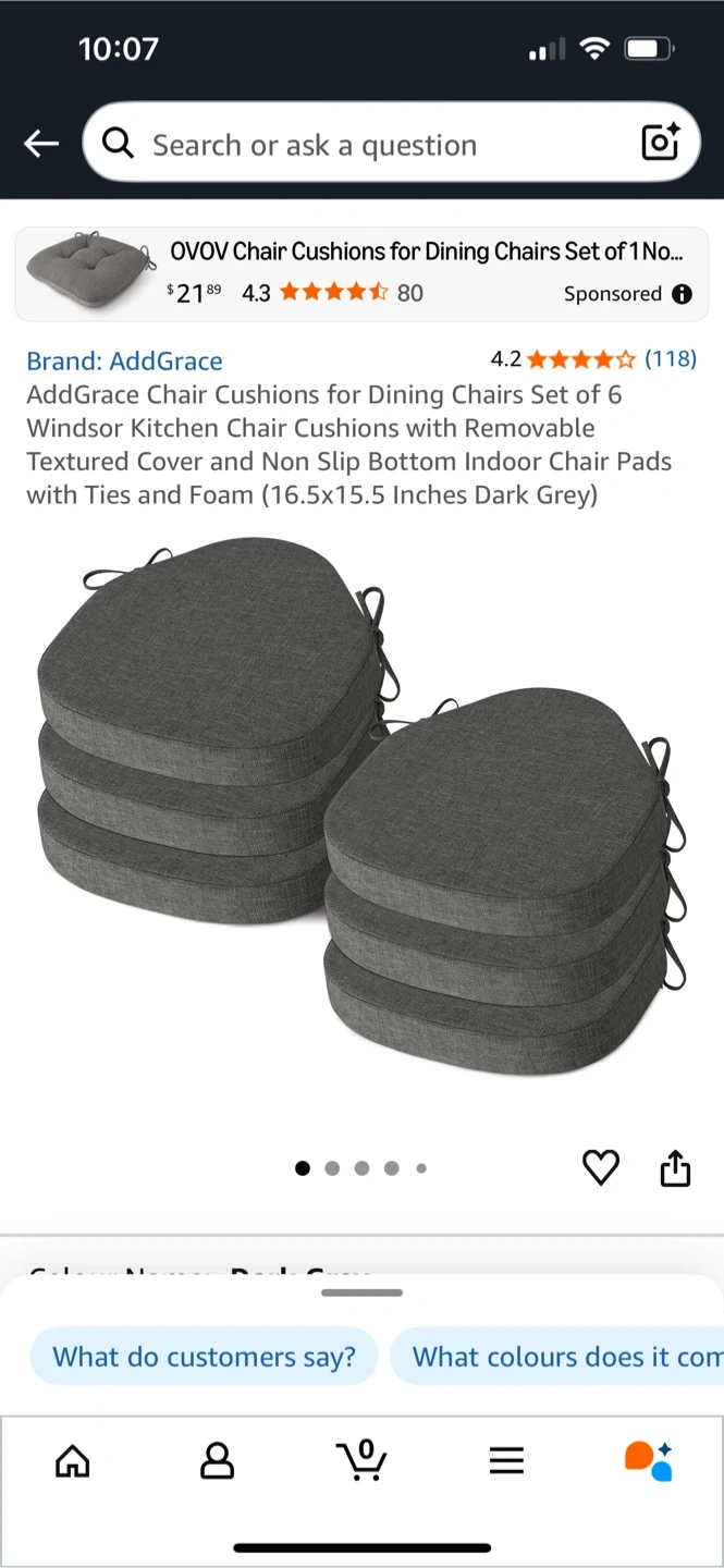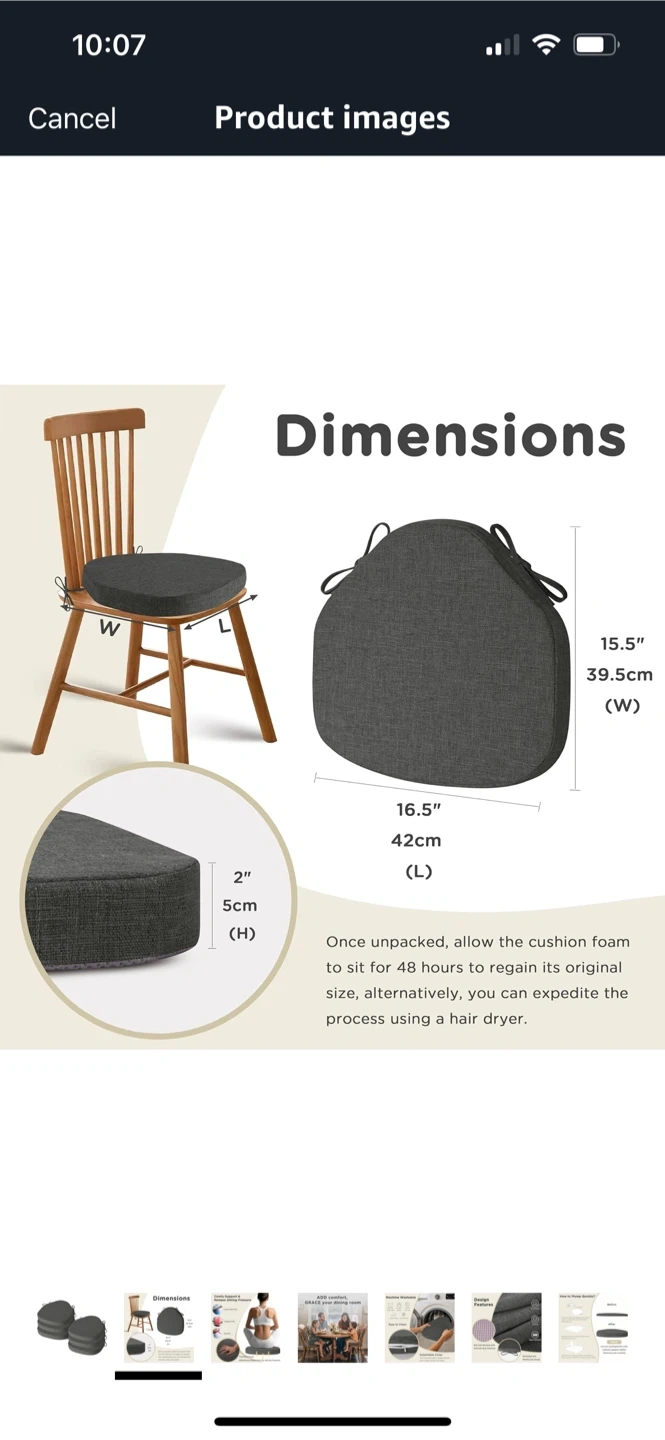 These AddGrace chair cushions are perfect for adding comfort and style to your dining chairs! They come in a dark grey colour and measure 16.5 x 15.5 inches. The cushions have a removable textured cover and a non-slip bottom, plus ties to keep them securely in place. They're designed for indoor use and are filled with foam for extra comfort