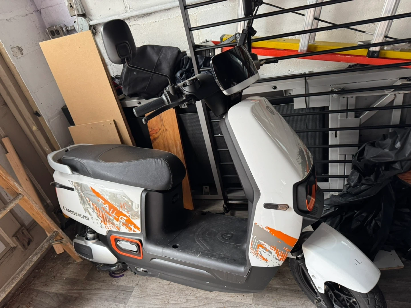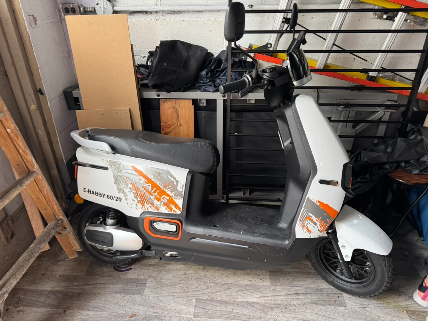 TAILG E-RABBY 60/20 electric scooter in white with orange accents. This scooter offers a convenient way to get around town. It's ideal for short commutes or running errands.