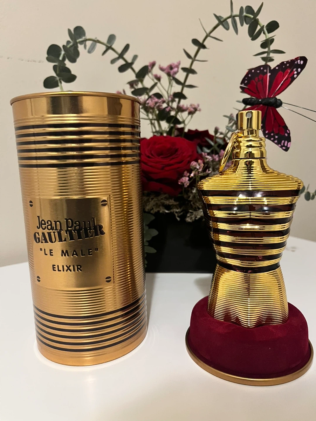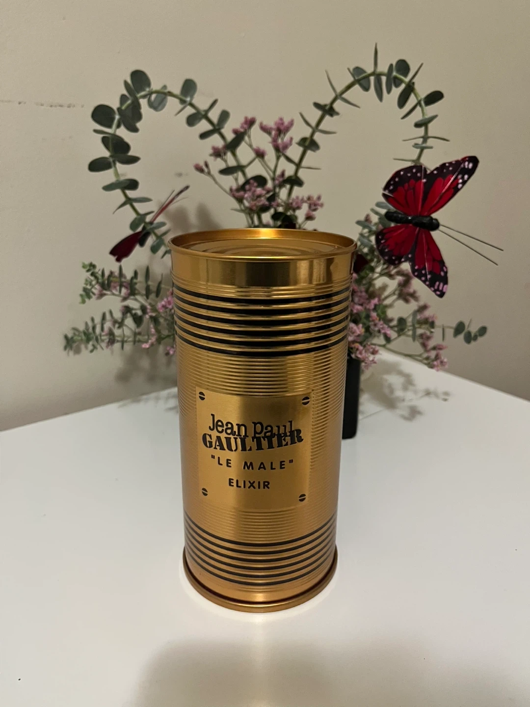 Jean Paul Gaultier "Le Male" Elixir Eau de Parfum. This is a 125ml bottle. It comes in its original gold tin packaging.