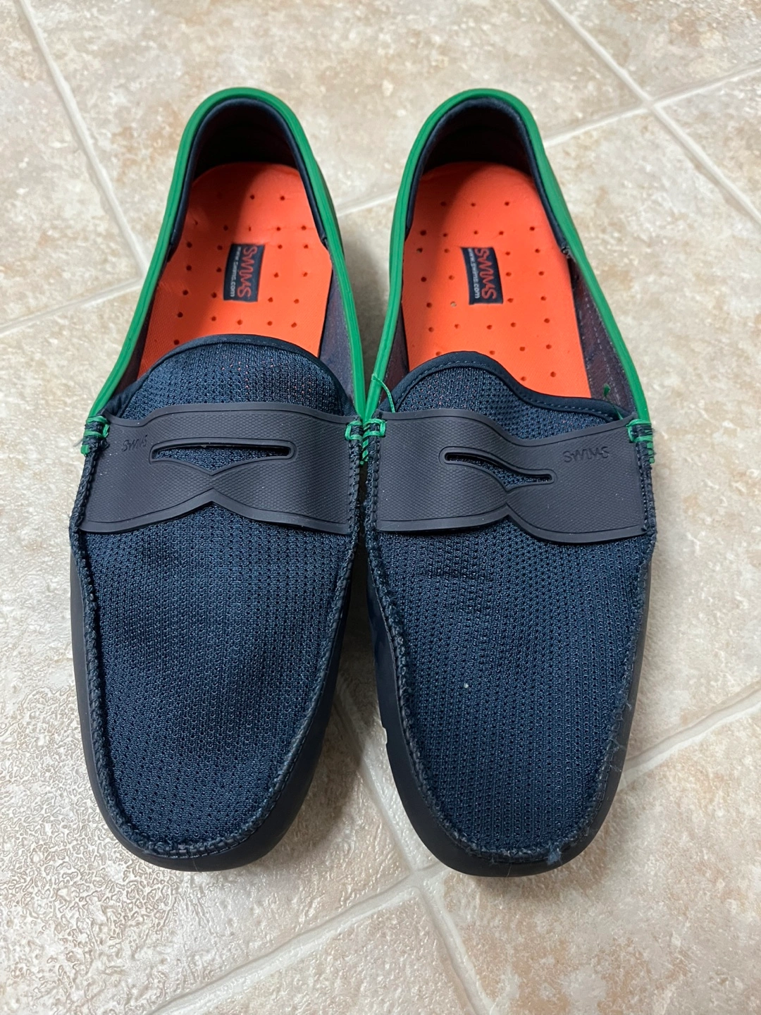 SWIMS Men's Navy and Green Slip-on Loafers - Size US 13