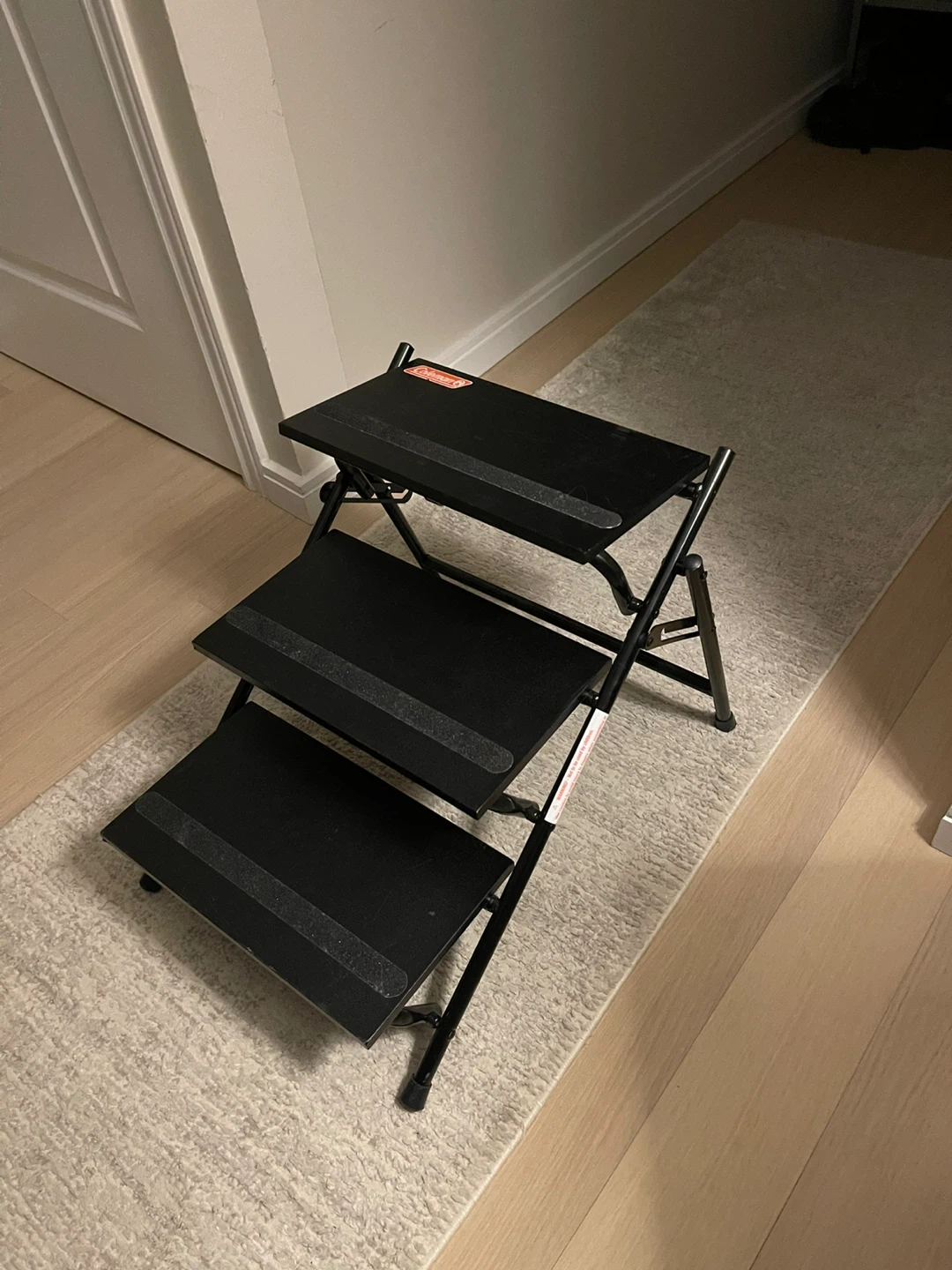 Coleman 3-step pet stairs/ramp. Black with non-slip treads, sturdy metal frame. Can be used as stairs or a ramp. Great for helping pets get into the car or onto furniture! Folds for easy storage. Great condition!