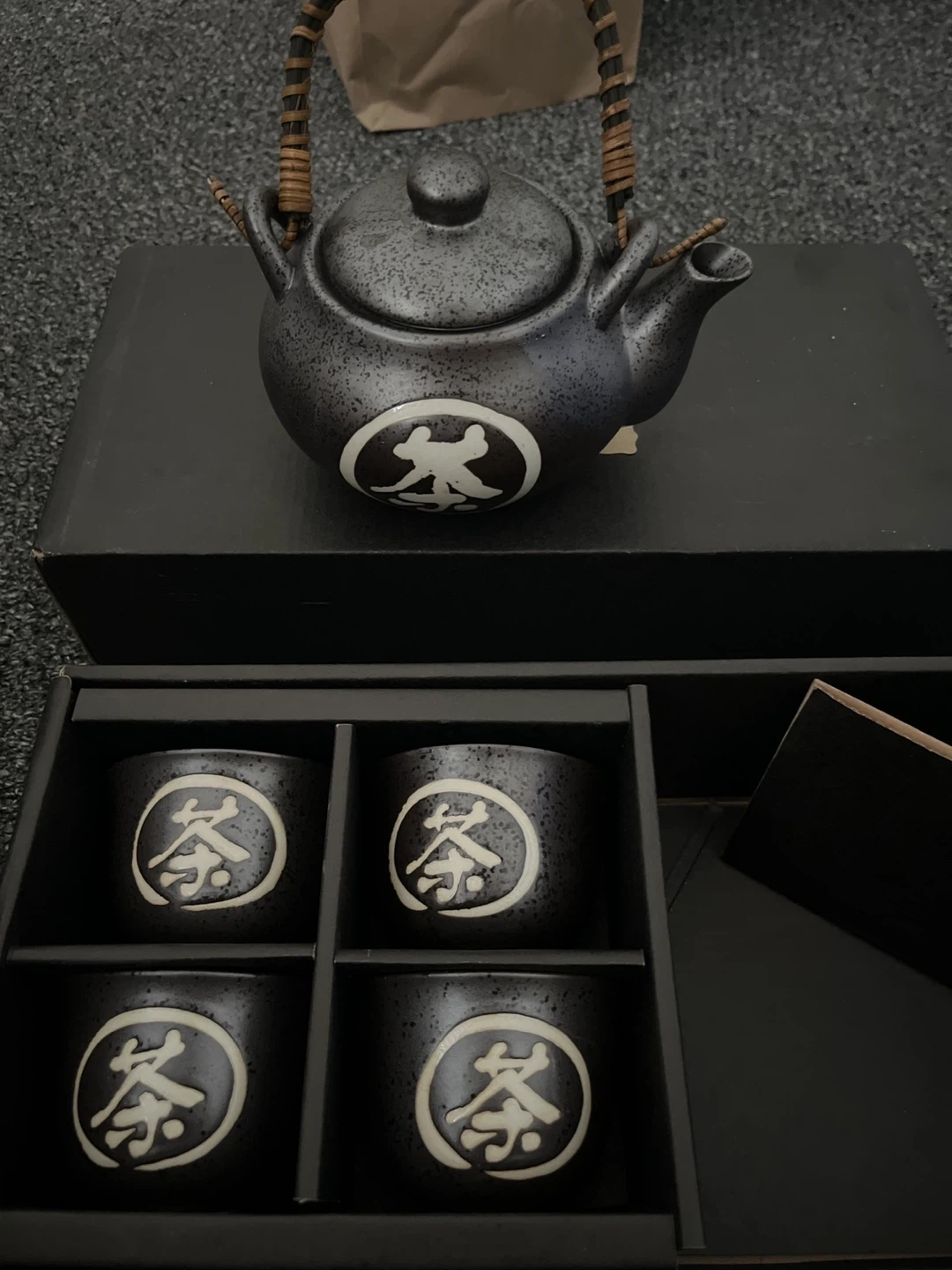 Selling a beautiful Japanese tea set! It comes with a teapot that has a built-in strainer and four matching tea cups. New never used. Perfect for enjoying a relaxing cup of tea.