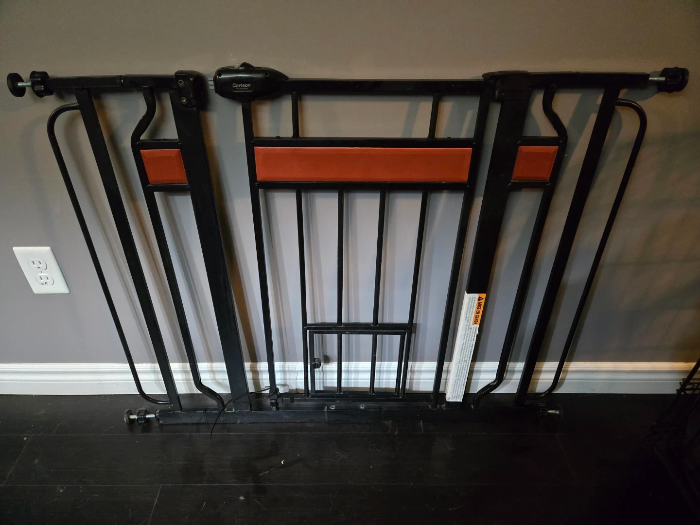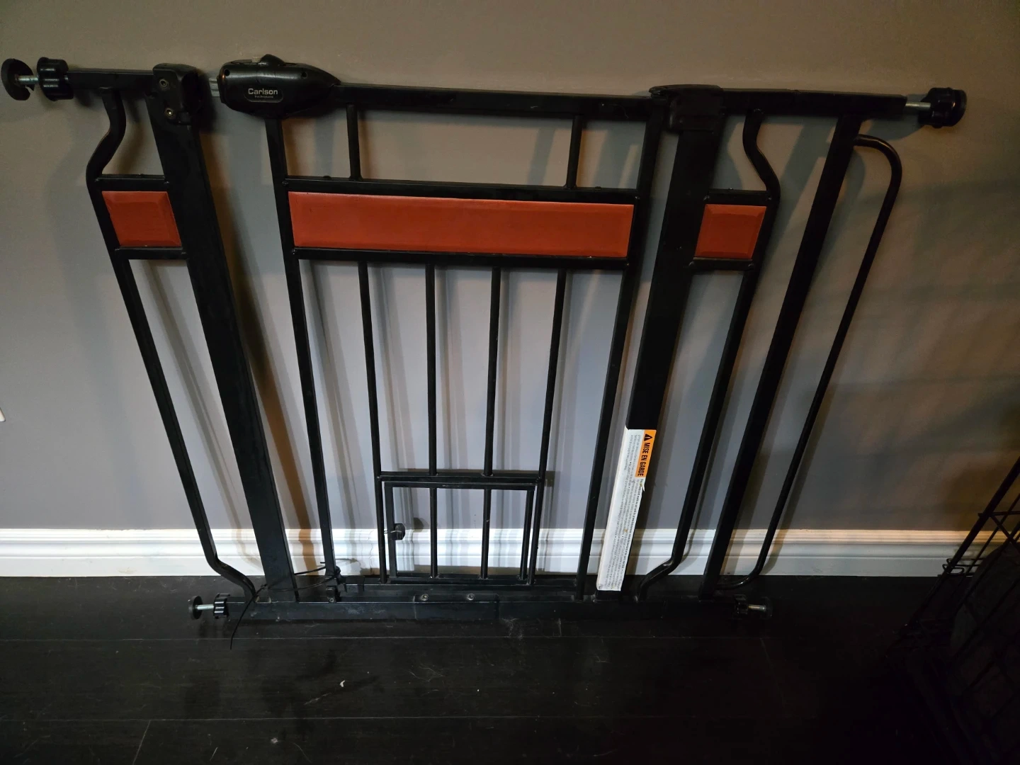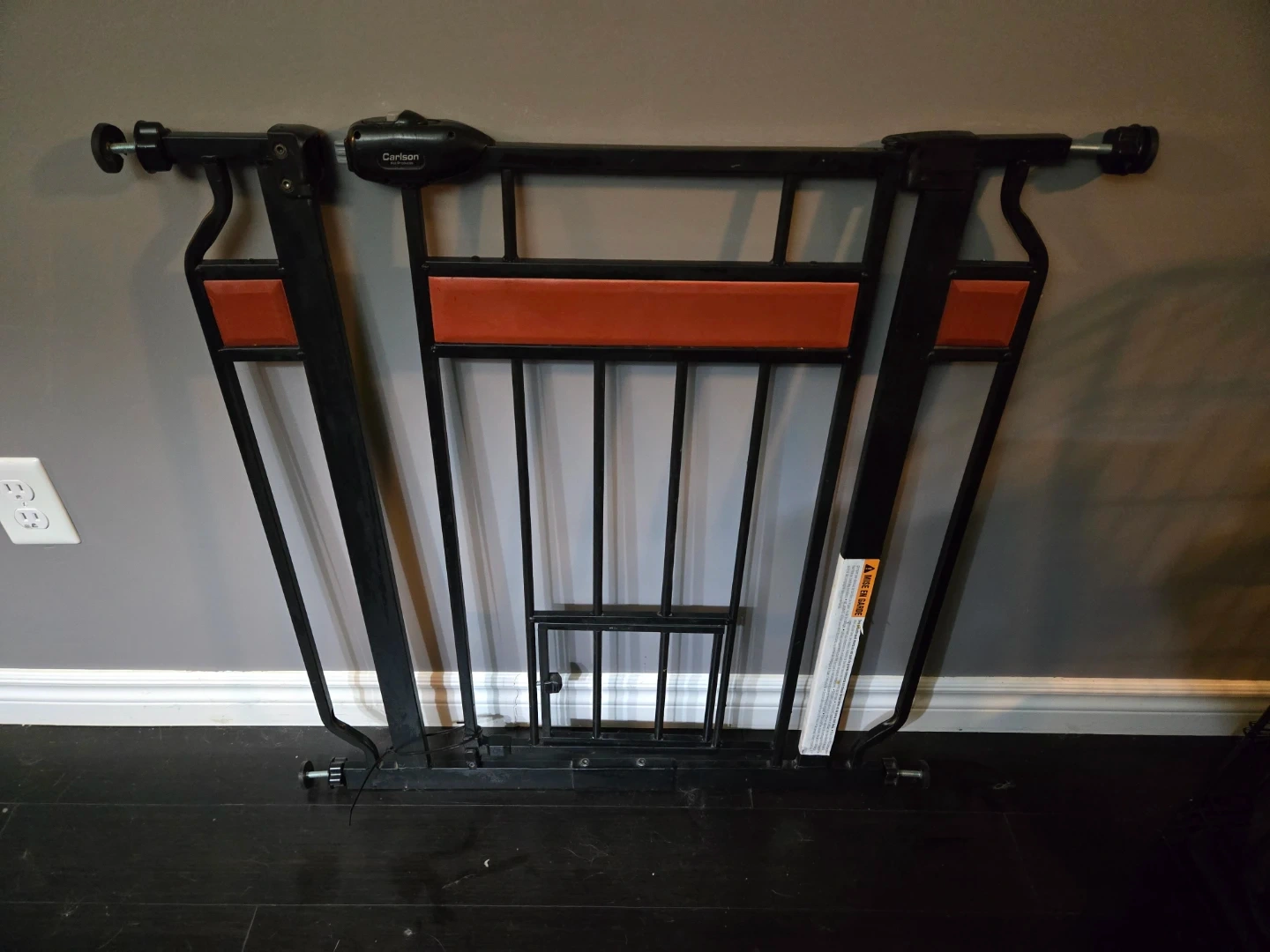 Selling a baby or pet gate. It's in great shape and comes with 2 extensions extensions and feet to make it extra wide if needed. Perfect for keeping your little ones safe! Has a cat door or small pet door. Pressure mounted.