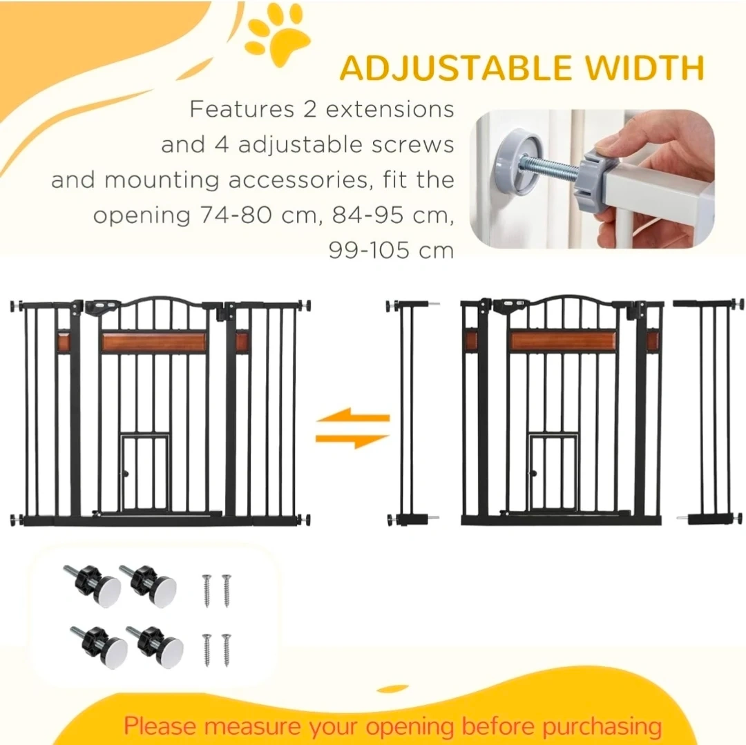 Baby/Pet Gate with Extensions & Cat Door