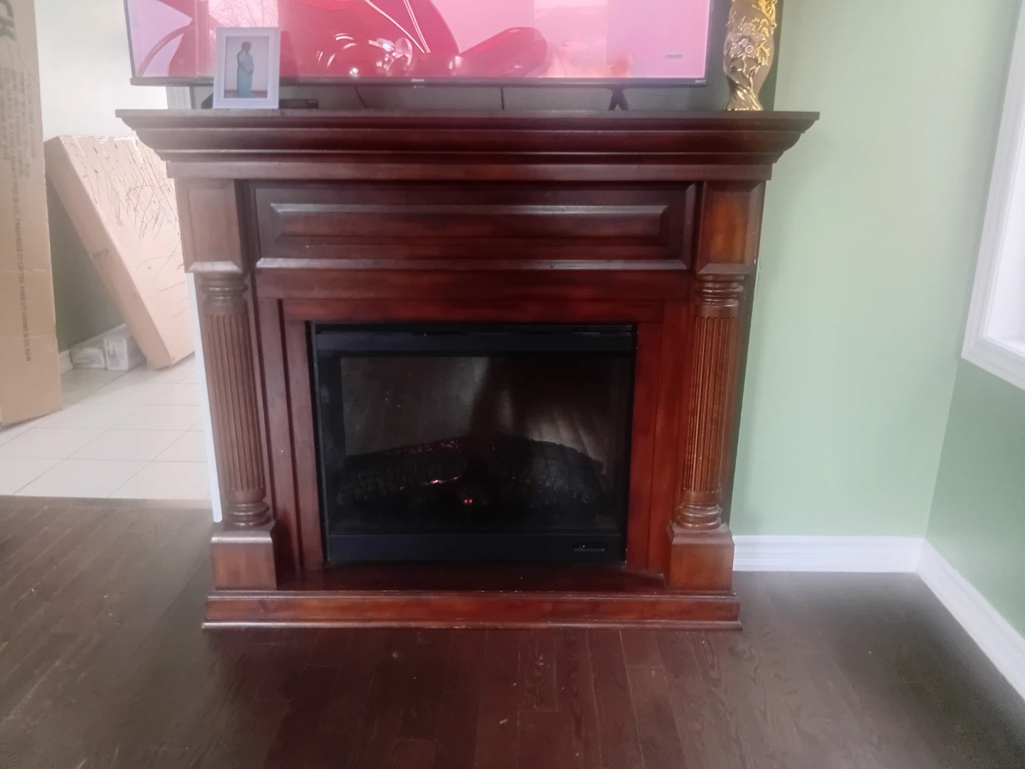 This is a beautiful wooden electric fireplace with a realistic flame effect. It has a simple on/off switch for operation. The rich, dark wood finish complements most decor styles. Bought this for $1500 selling for $500