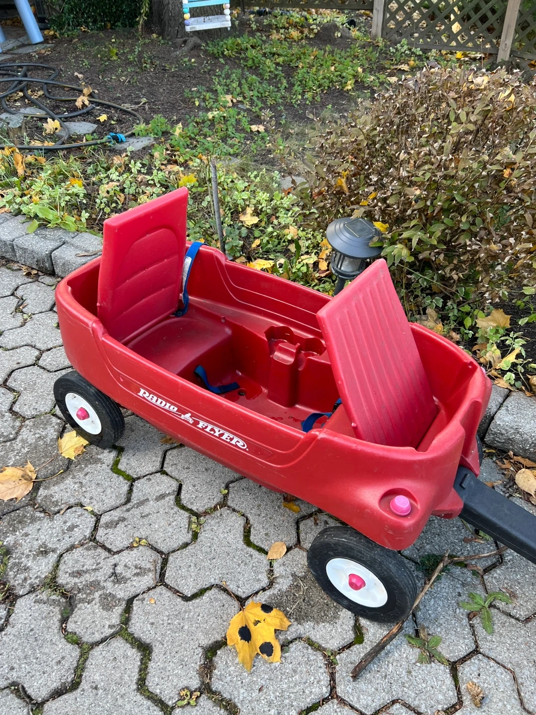 Selling a red Radio Flyer wagon! It's in great shape and ready for new adventures. Perfect for kids and hauling stuff around the yard.