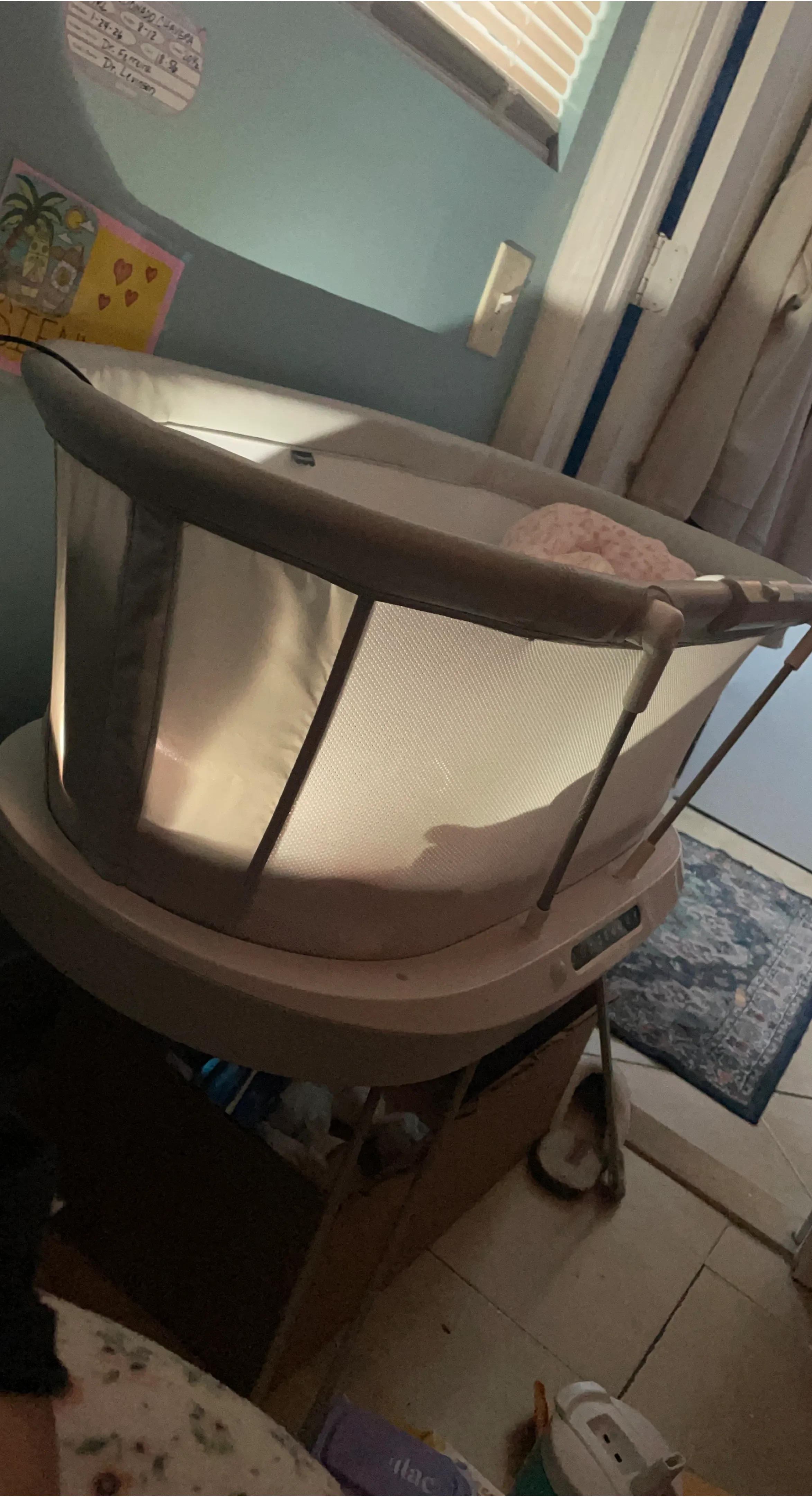 This is a Graco Dream Suite Bassinet. It's designed for convenient bedside sleeping. Mesh sides provide airflow and visibility.