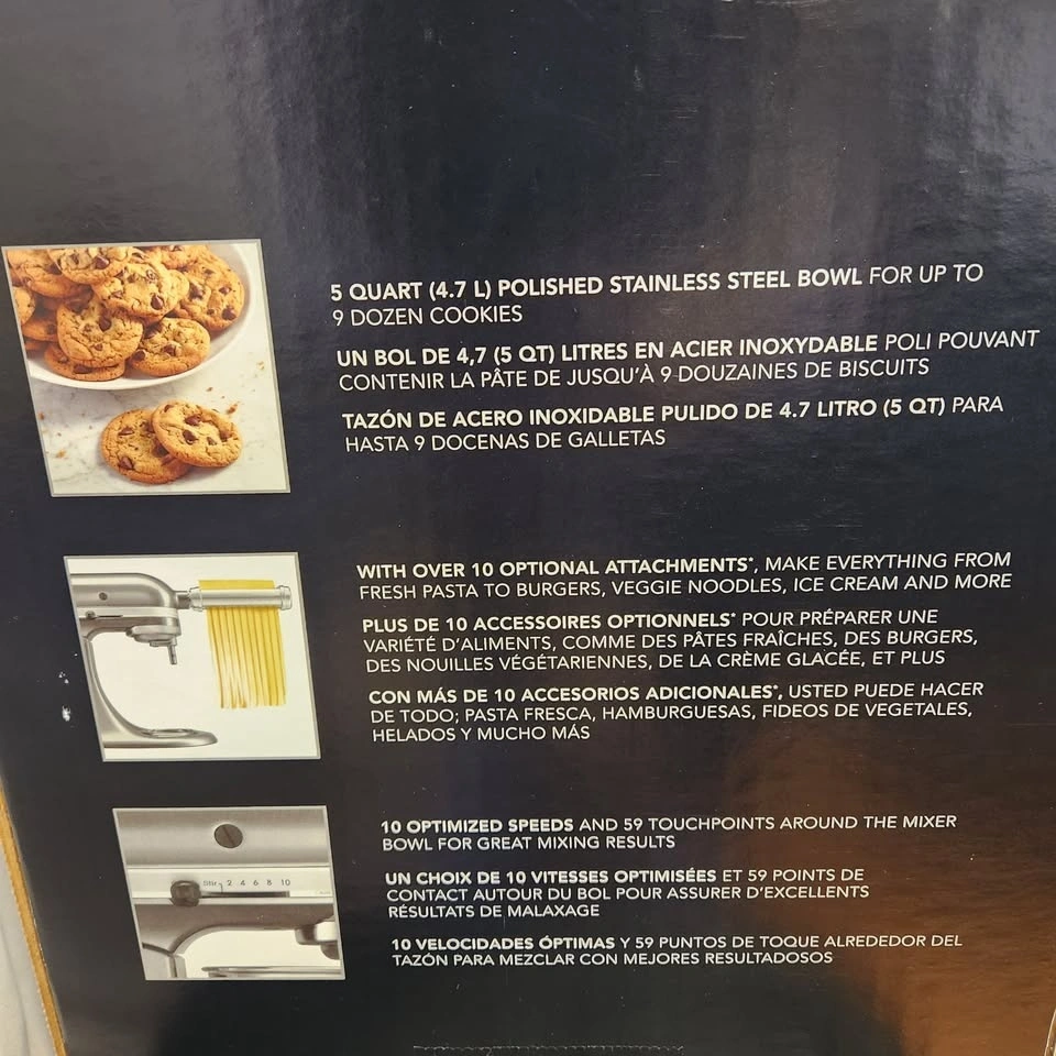 Brand new, sealed box KitchenAid Artisan 5-Qt Tilt-Head Stand Mixer in Matte Grey. This high-quality mixer is perfect for baking breads, pastries, cookies, doughs, and more. Comes with 4 paddles (see photo 3). Many handy accessories can be purchased separately, making it a very functional appliance with a wide array of applications. Pickup near North Burnaby Secondary School. Cash preferred.