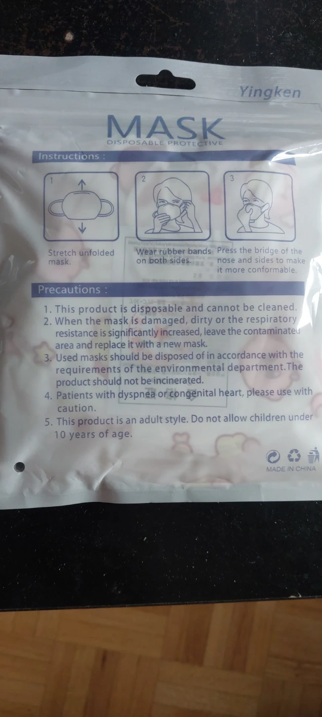These Yingken disposable protective masks come in a pack of 10. They feature a cute cartoon design and are designed for everyday use. The masks are for adult style use only.