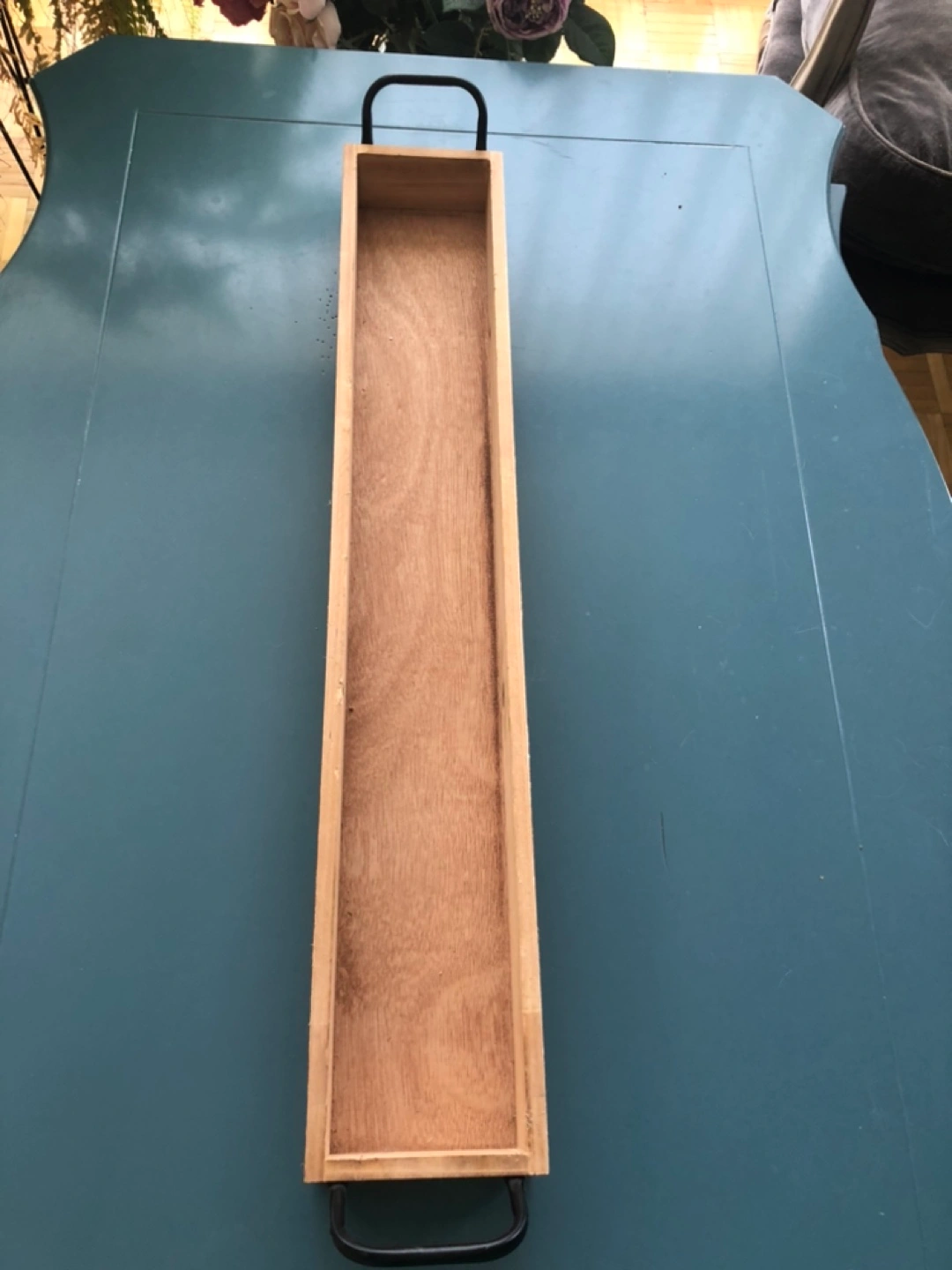 Long Wooden Tray with Metal Handles