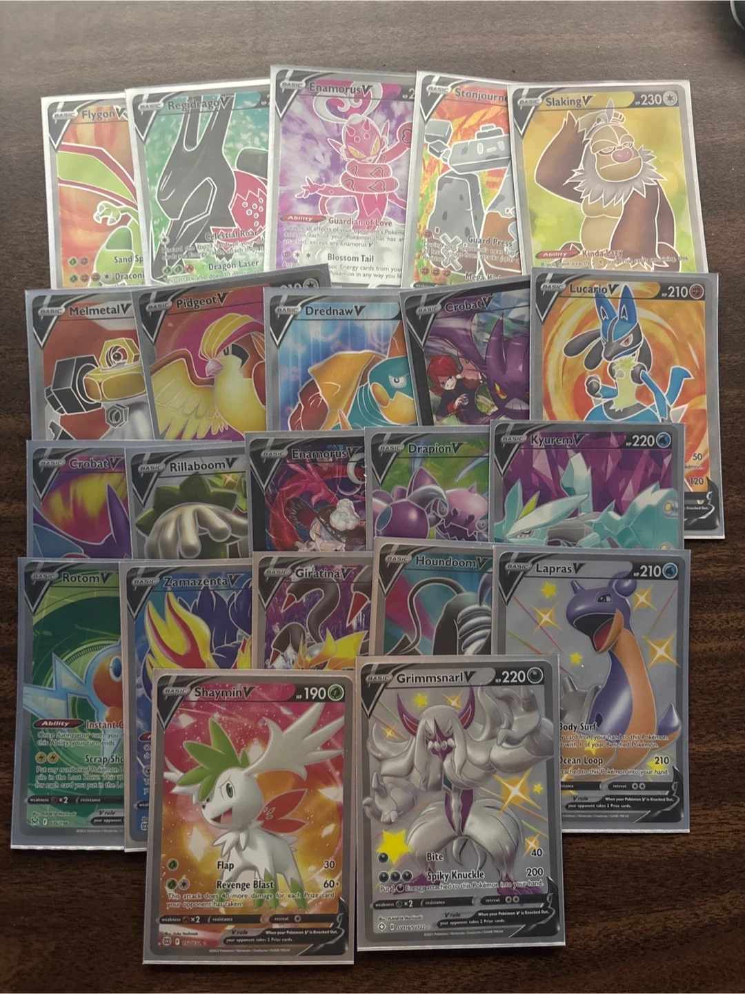A collection of Pokémon V cards, including several rare V cards. These cards are ideal for collectors and players looking to expand their decks. Great for Pokémon TCG enthusiasts! Sleeves not included