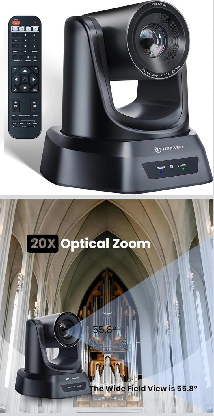 ✈【20X Zoom HDMI PTZ Camera】This 20x Zoom PTZ Camera has HDMI and USB outputs which simultaneously output 1080p video signals at 60fps, and Our Conference Camera features 20X Optical Zoom and a 55.8°FOV wide-angle lens. Accurate and stable autofocus, free control to zoom objects closer and farther to achieve the best image effect, support video Compression Format: YUV, MJPEG, H.264, makes church live or video conference more fluent and clear, ideal for medium to large meeting rooms: 60 square meters