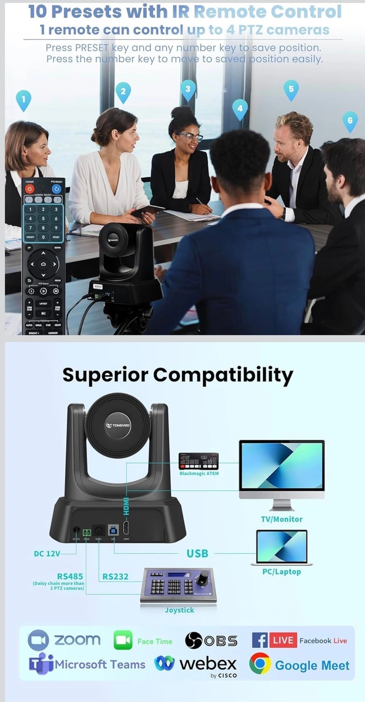 ✈【Broad application compatibility and Wide use】Works with most video conferencing and live streaming software such as Zoom, OBS, Facebook Live, WebEx, Polycom,Teams, BlueJeans, etc. Supports Windows 7, Windows 8.1, Windows 10, Windows 11, Mac OS 10.10 and higher. Ideal for Video Conferencing, Church live streams, Remote Meetings, Distance Education, Remote Consultation, etc