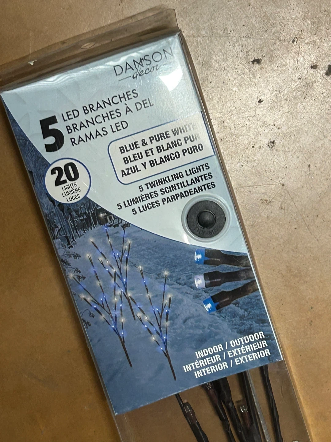 I have two sets of Danson Decor LED Branches for sale. They are brand new and still in their original packaging. Each set has 5 LED branches with 20 lights. They are blue and pure white, perfect for indoor or outdoor decoration!