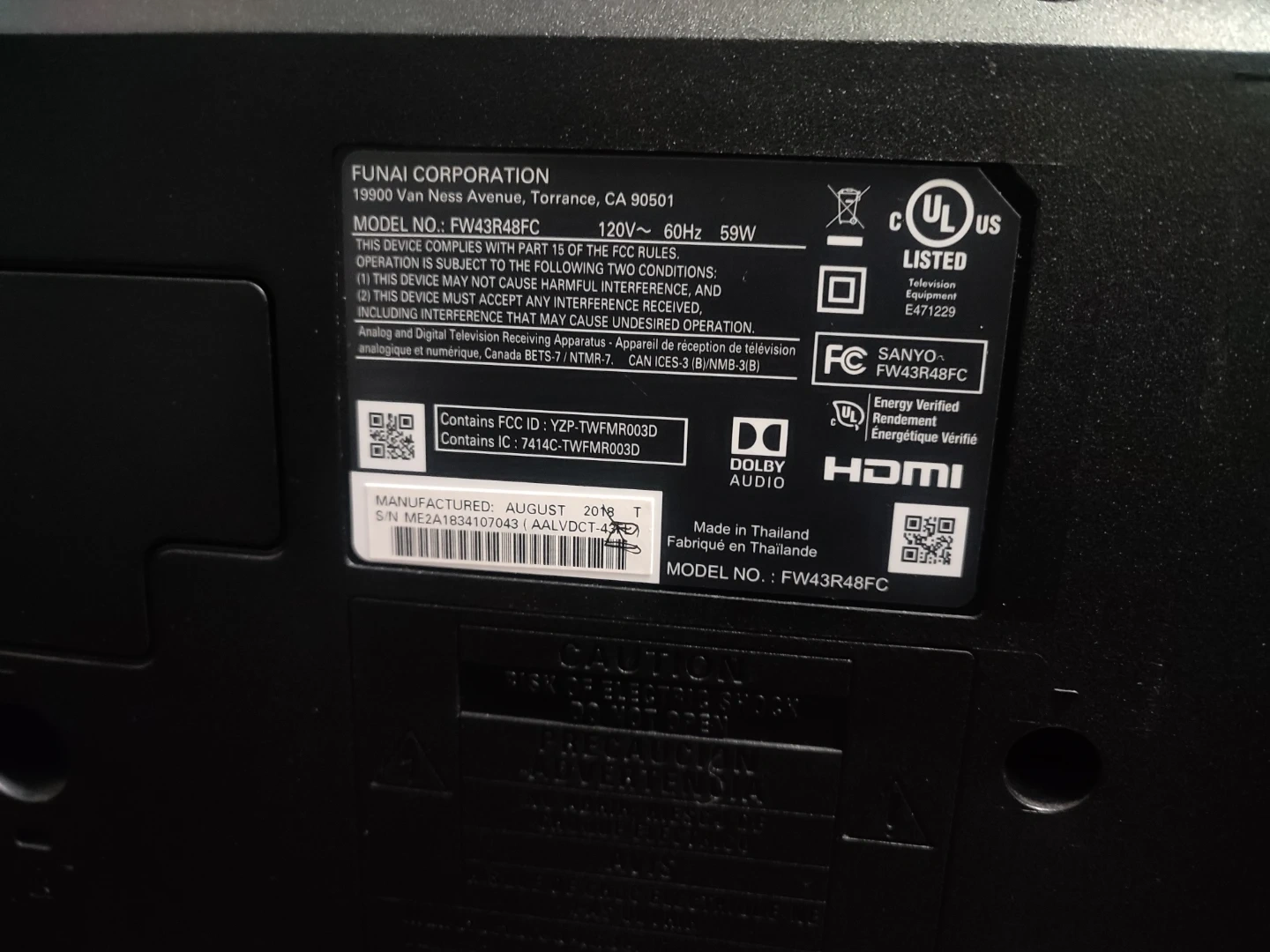 Broken screen -Sanyo 43” 1080p Roku Smart TV, FW43R48FC