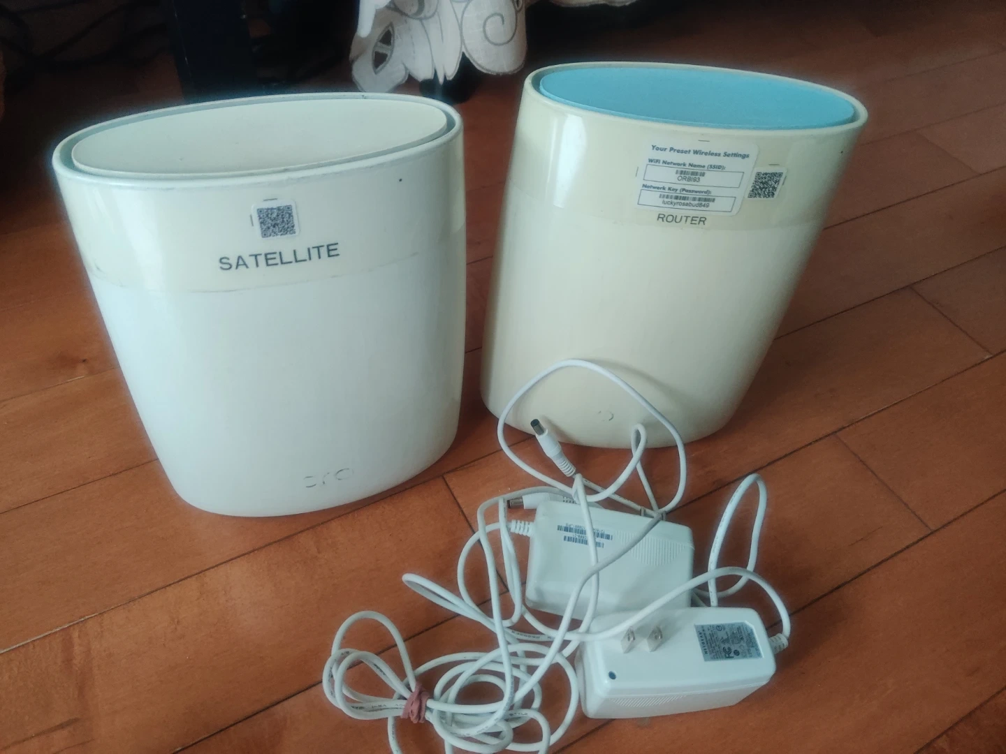 This is a NETGEAR Orbi system, including a router and a satellite. Power adapters are included. This mesh Wi-Fi system expands your wireless network's coverage.