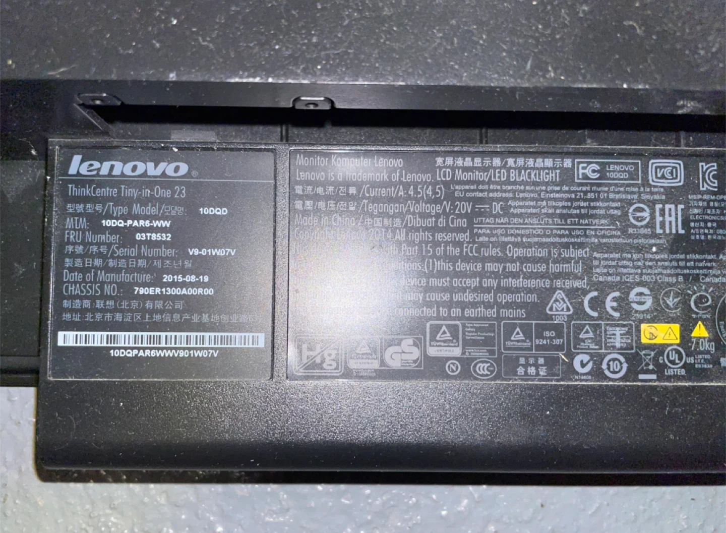 Selling a Lenovo ThinkCentre Tiny-in-One 23 monitor. It's in good working condition and ready for a new setup!