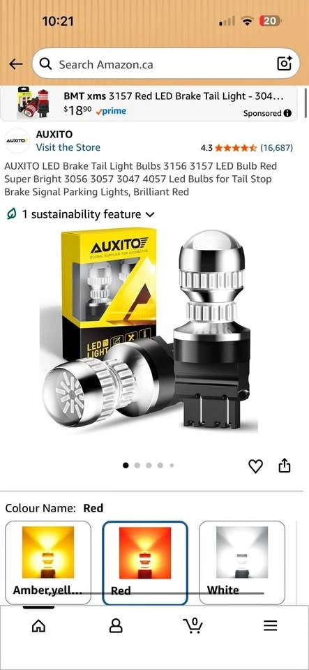AUXITO 3157 LED Brake / Tail Light Bulbs (Red) - $15