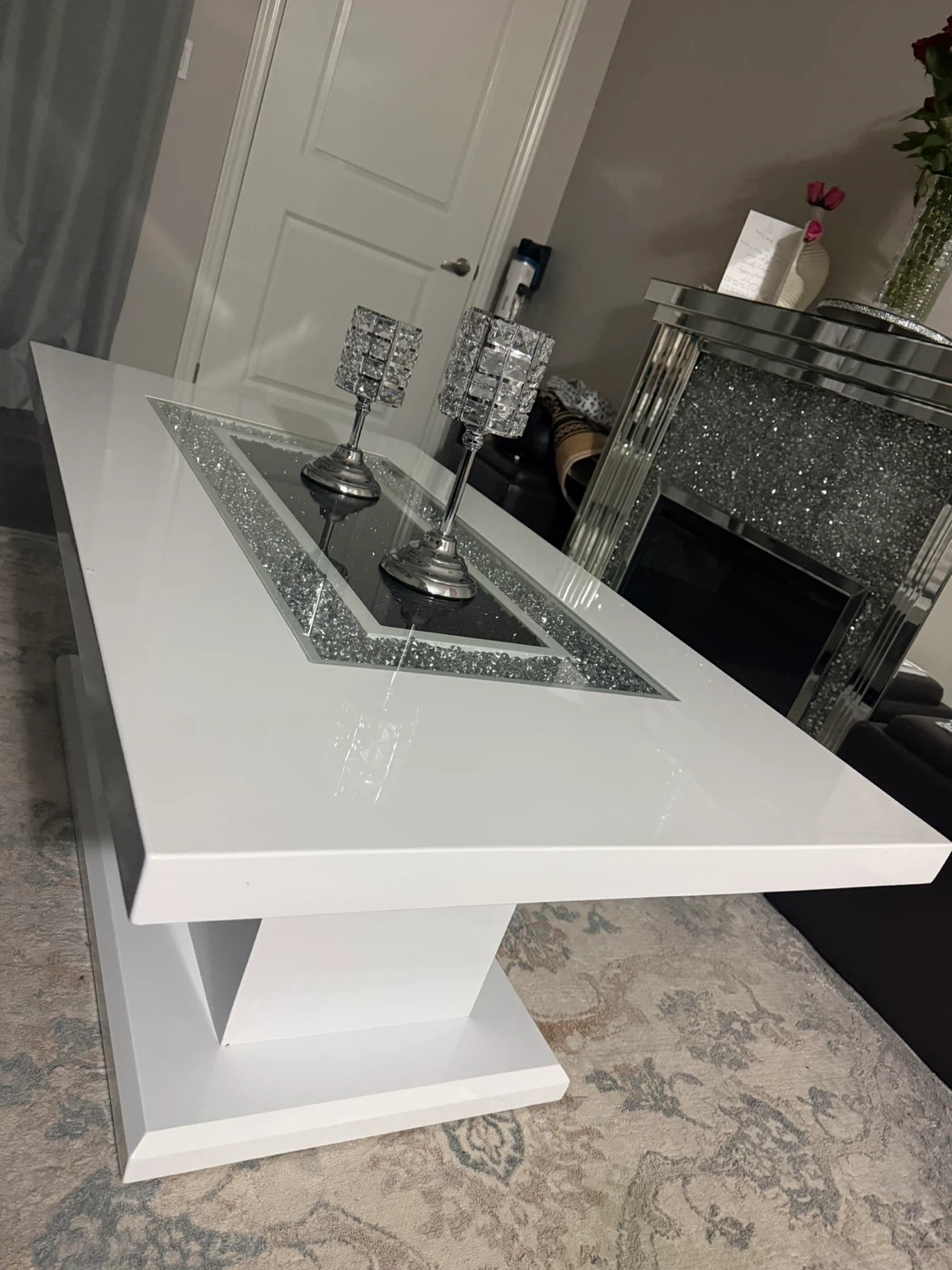 Glamorous Mirrored Crushed Crystal Fireplace Electric