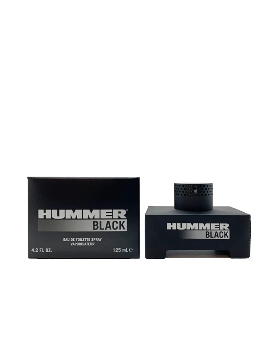 This is Hummer Black Eau de Toilette Spray for Men. It's a 125 mL bottle, which is 4.2 fl. oz. The spray is a vaporisateur.