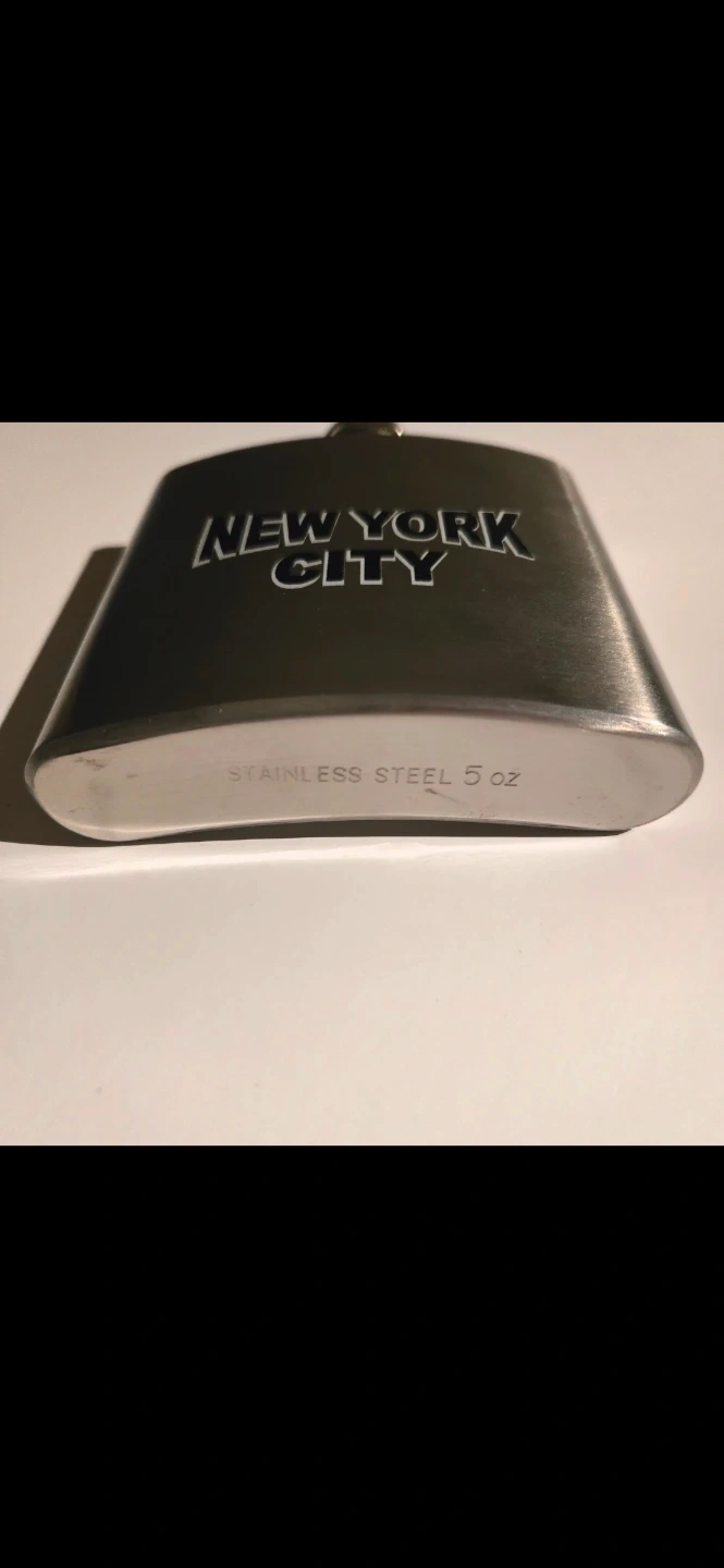 This is a stainless steel flask featuring the "New York City" text. It holds 5 oz and is made of durable stainless steel. It's a great keepsake for any New York City enthusiast!