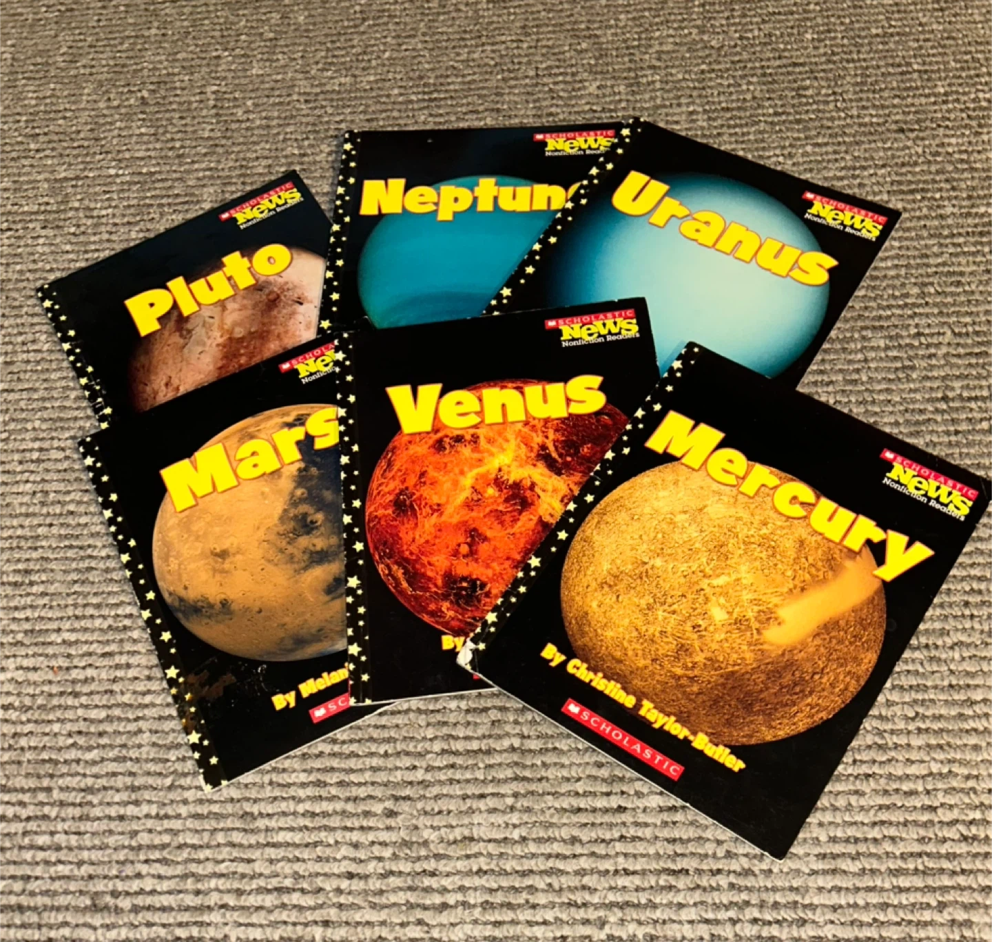 Here is a partial set of Scholastic News early reader books about planets in our solar system. Titles include Mercury, Venus, Mars, Pluto, Neptune, and Uranus. Each book has a word hunt, several pages of interesting facts and pictures, a view of that planet’s place in our solar system, a glossary, and finishes with a quick fact table. Great for young learners interested in space!