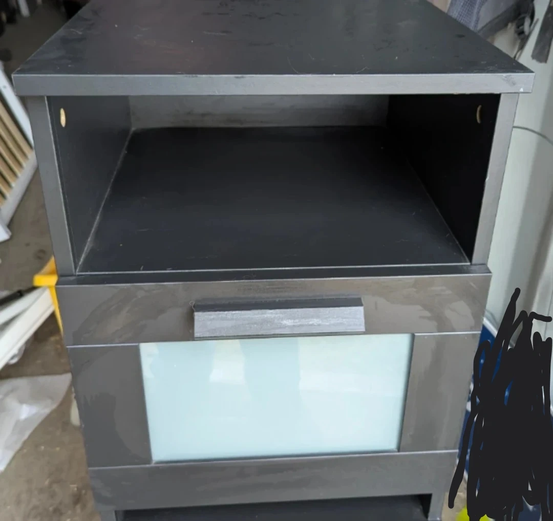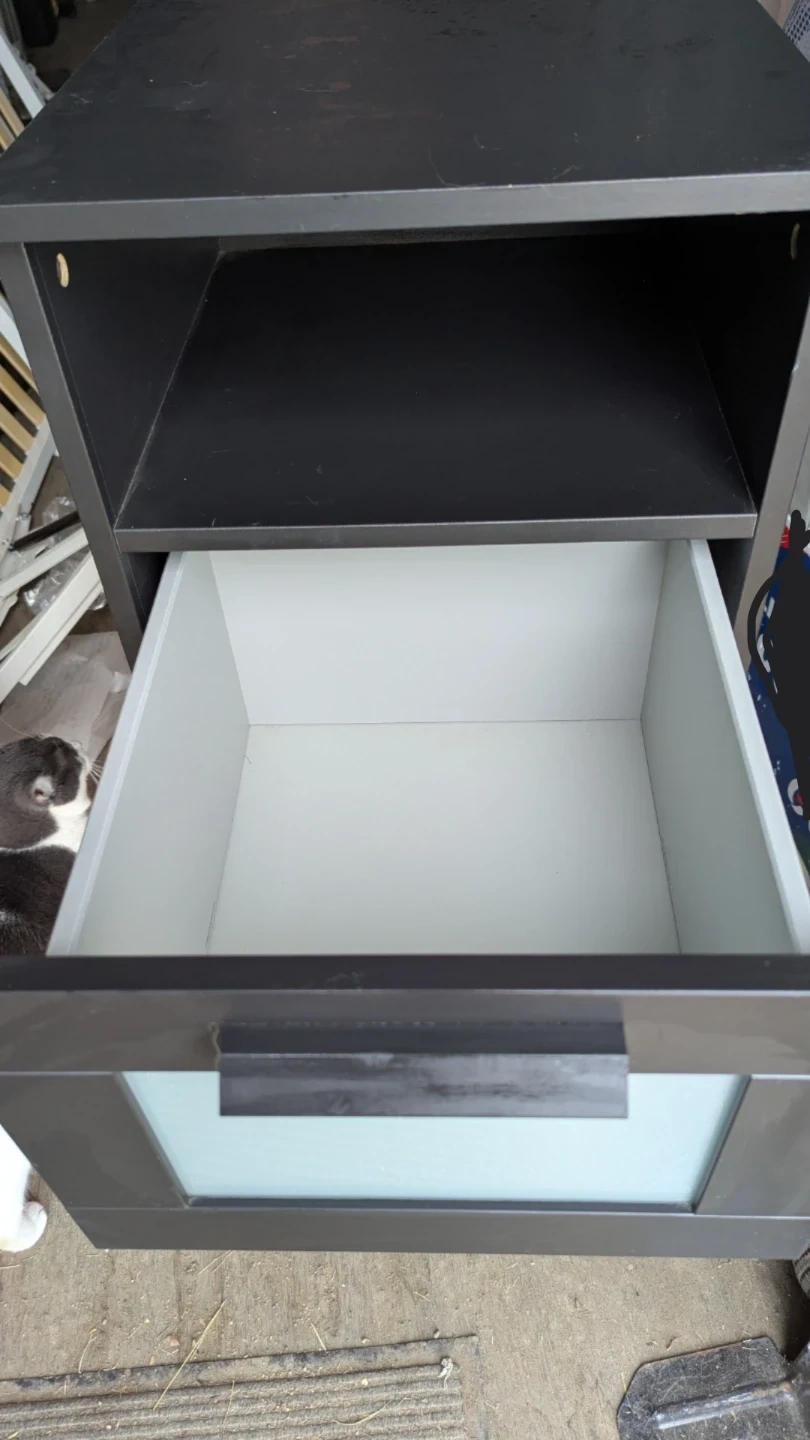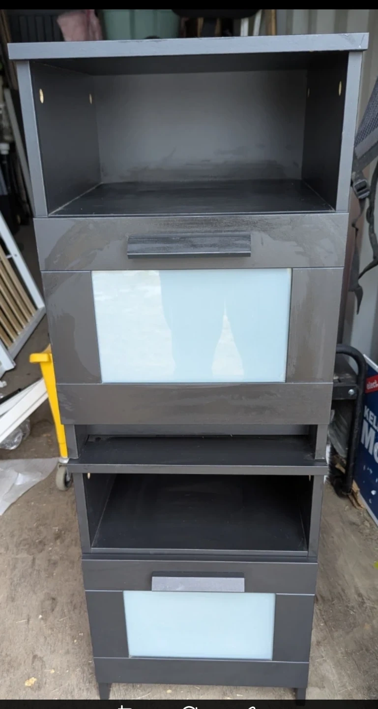 These dark nightstands features a drawer with a frosted glass insert and an open shelf. Perfect for keeping your bedroom essentials organized. Measures approximately 21" high. Price is for each.