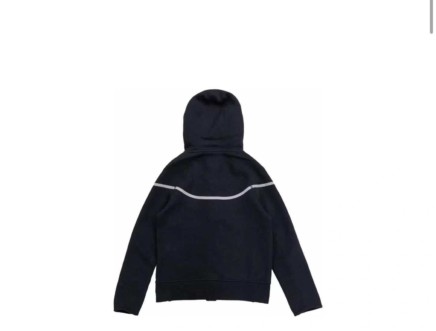 Black Nike Tech Fleece full-zip hoodie with reflective accents. It's a size medium. This hoodie is great for everyday wear.