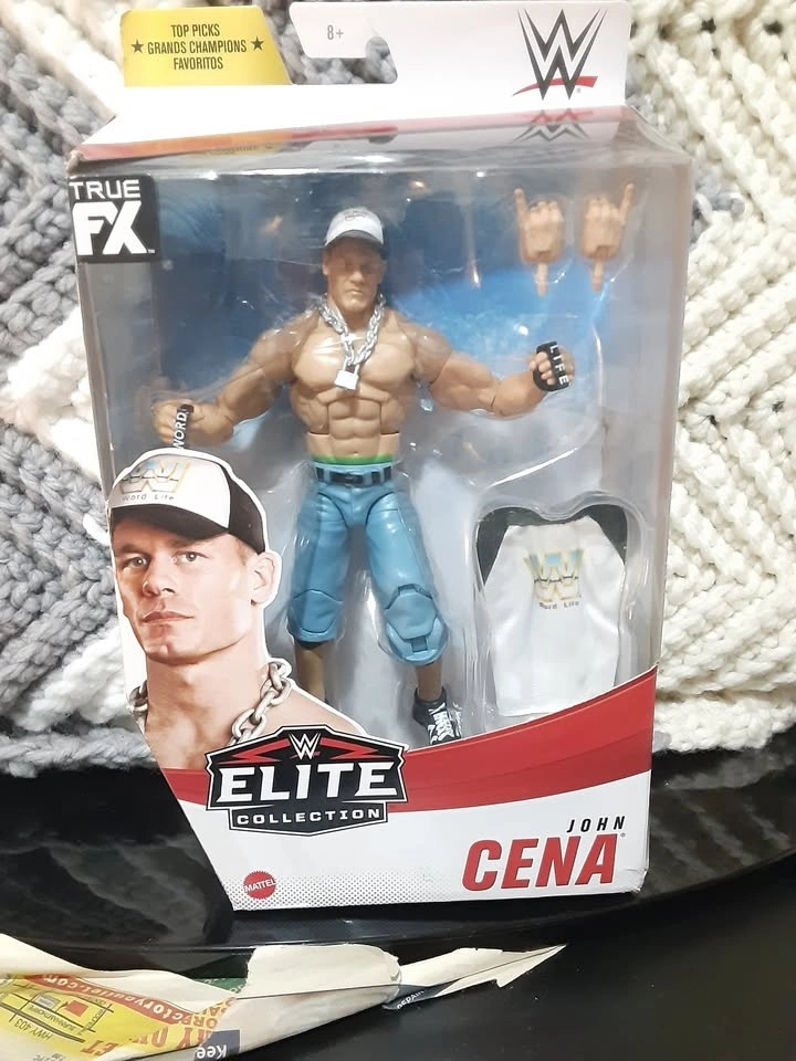 WWE Elite John Cena 6-inch Action Figure with Deluxe Articulation for Pose and Play WWE Top Picks Elite John Cena 6-inch Action Figure with Deluxe Articulation for Pose and Play, Life-Like Detail, Authentic Ring Gear & Accessory John Cena action figure comes in approximately 6-inch (15.24 cm) pose and play scale. Features include deluxe articulation, TrueFX facial detailing for life-like authenticity, WWE ring gear and accessory. Includes : Action Figure, 2 Hand Gestures,Facial variation, Tshirts and accessories Brand New - UnOpened Box Packed Best gift for Kids Brand new with Box. Retail Amazon / Walmart selling for $60 + Taxes Pickup Only NOT FREE - DM for Prices.