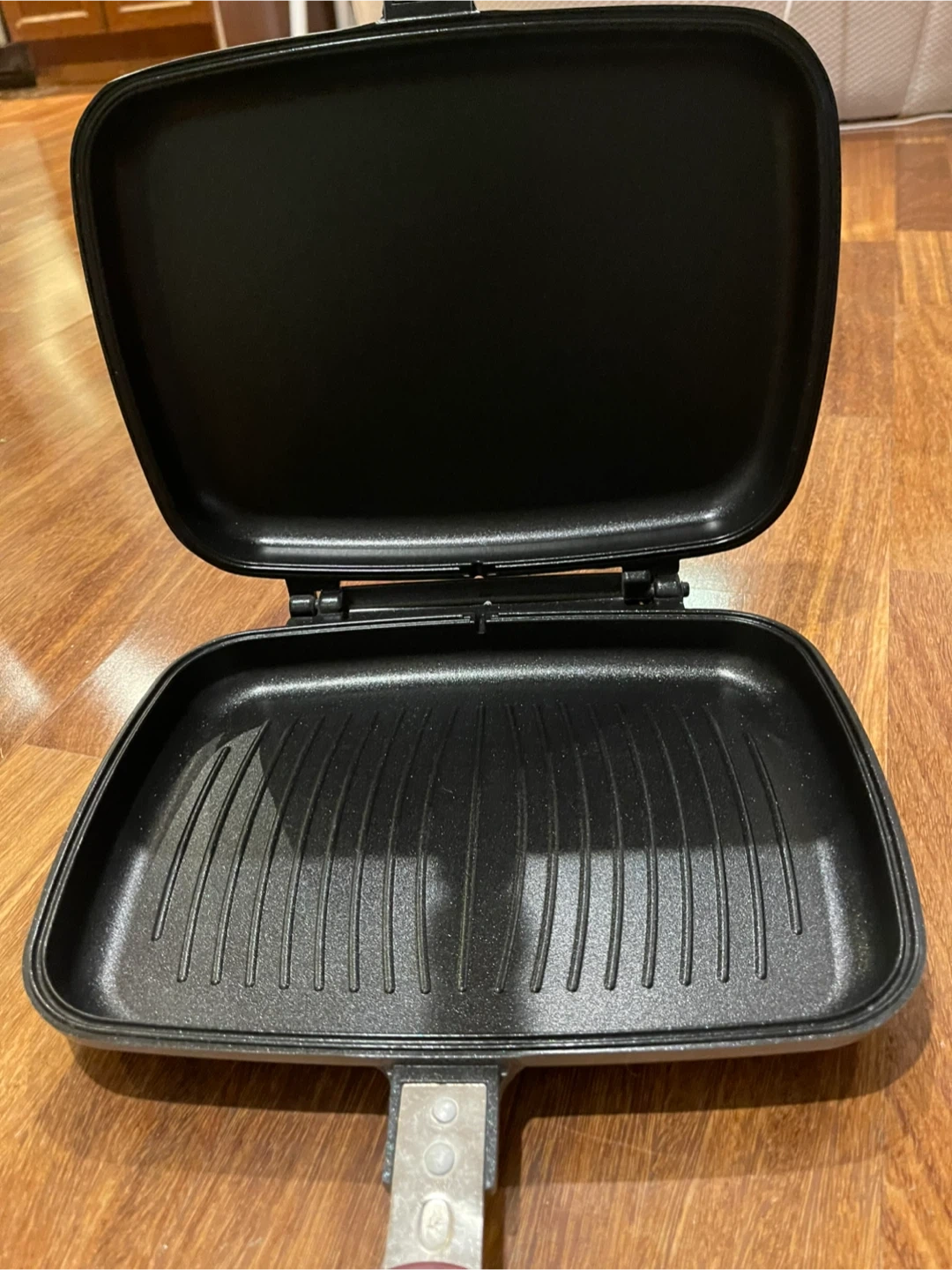 This is a Magic Chef double-sided grill pan. It's perfect for grilling sandwiches or other foods on both sides at once. The non-stick surface makes cooking and cleanup a breeze! No oil needed