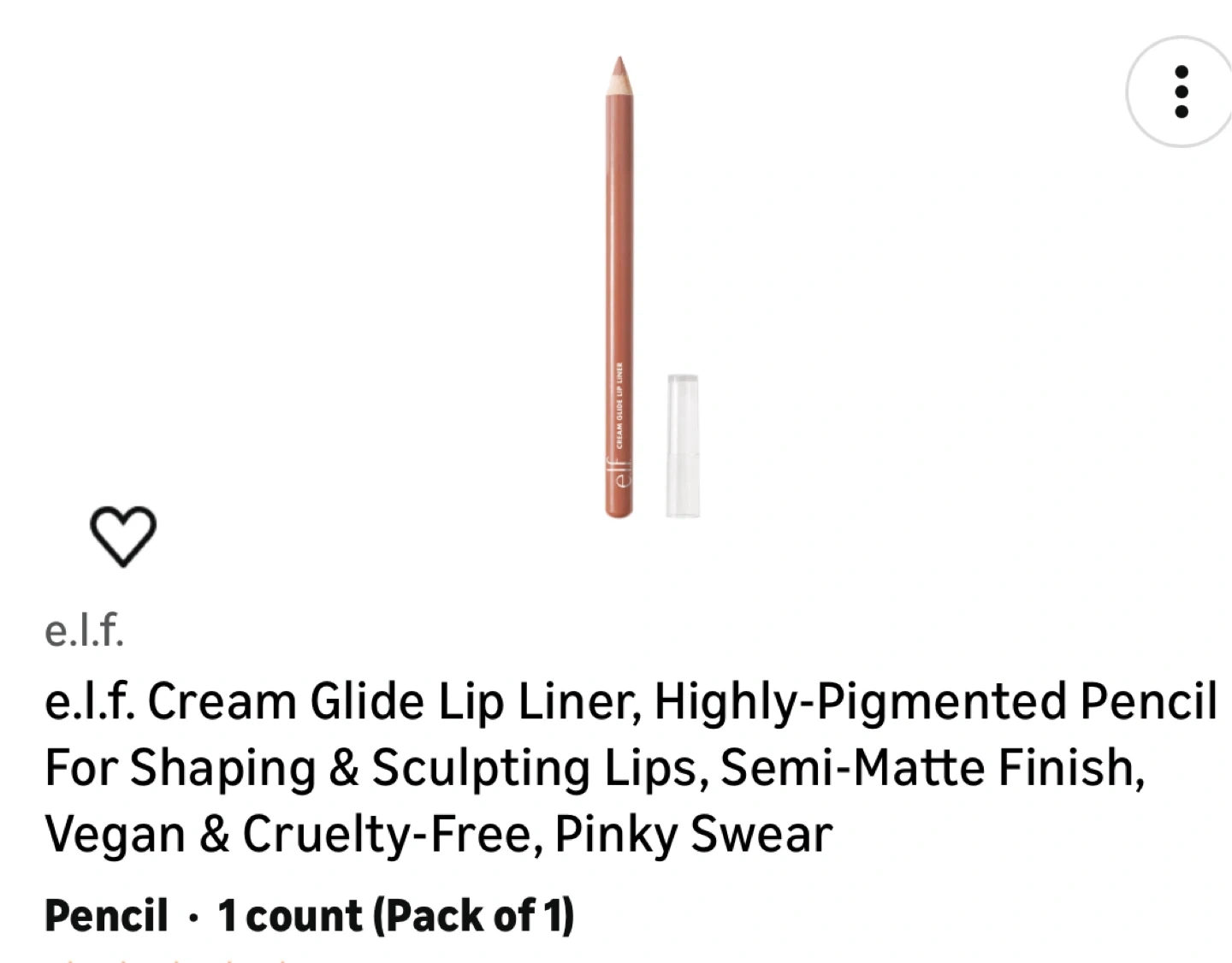 e.l.f. Cream Glide Lip Liner in the shade Pinky Swear. It's a highly-pigmented pencil with a semi-matte finish. This lip liner is vegan and cruelty-free. It's great for shaping and sculpting lips.