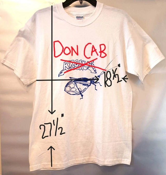 Don Caballero shirt in new condition, never worn! Tag says medium, but measurements are shown in photo. Gildan heavy cotton white shirt. No pinholes or stains. Able to meet up in downtown Kitchener