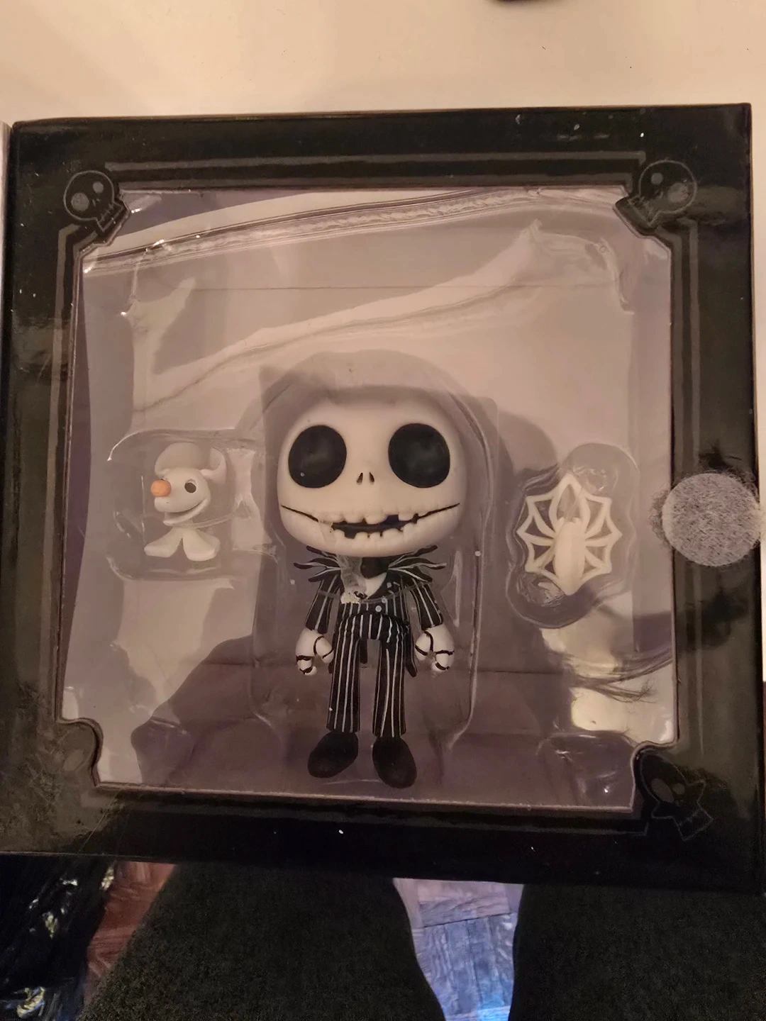 This Funko Pop! figure features Jack Skellington from Tim Burton's The Nightmare Before Christmas. It comes with Zero and a spider accessory. Perfect for collectors!