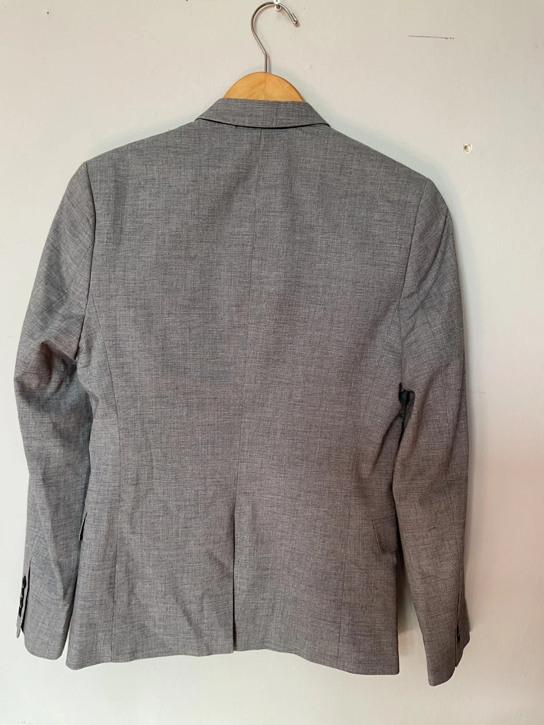 H&M grey skinny fit suit jacket. Two-button closure with two front pockets. Fully lined with an inner pocket.
