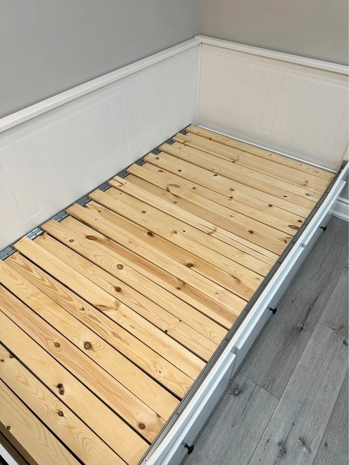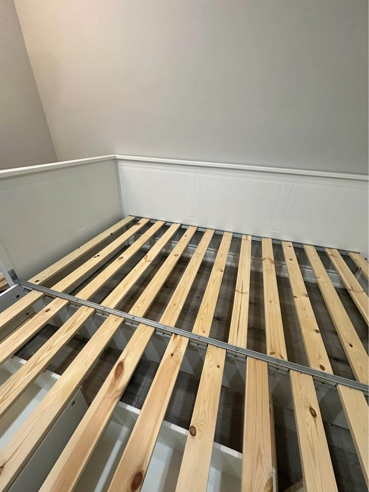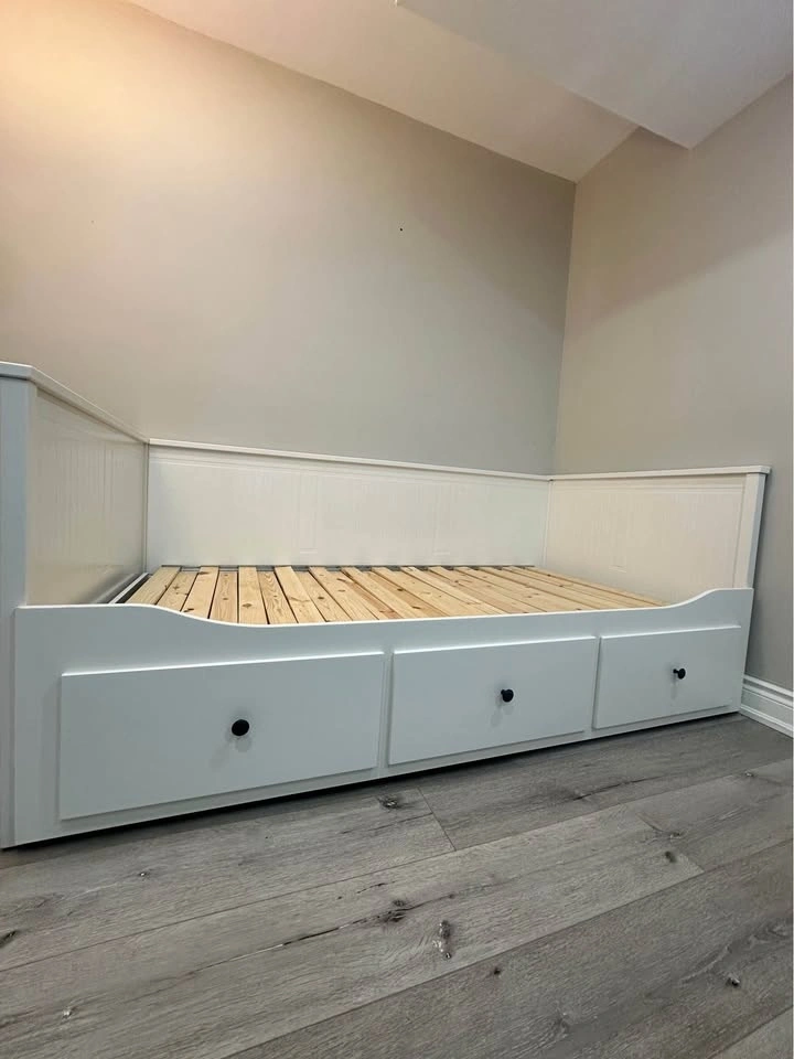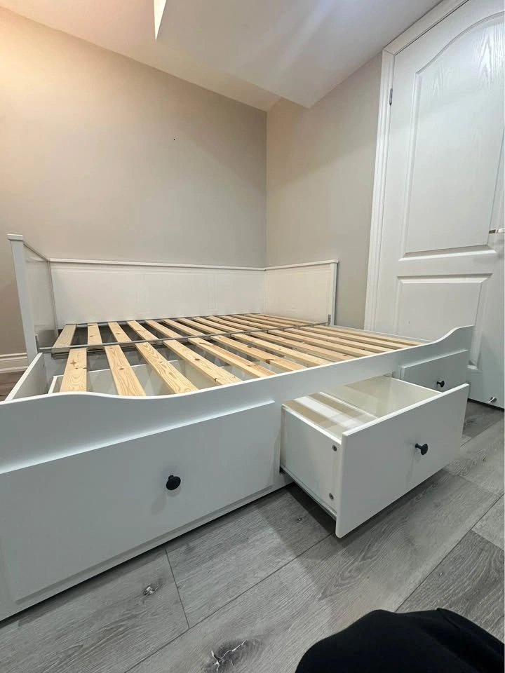 If the ad is up, it is still available. This daybed can easily pull out to become a double bed. It has three large drawers for storage. Used rarely for about 5 months. Selling as I am moving out. Used in a clean, pet-free home. Pick up near Frescho in Milton. Frame only, mattresses not included.