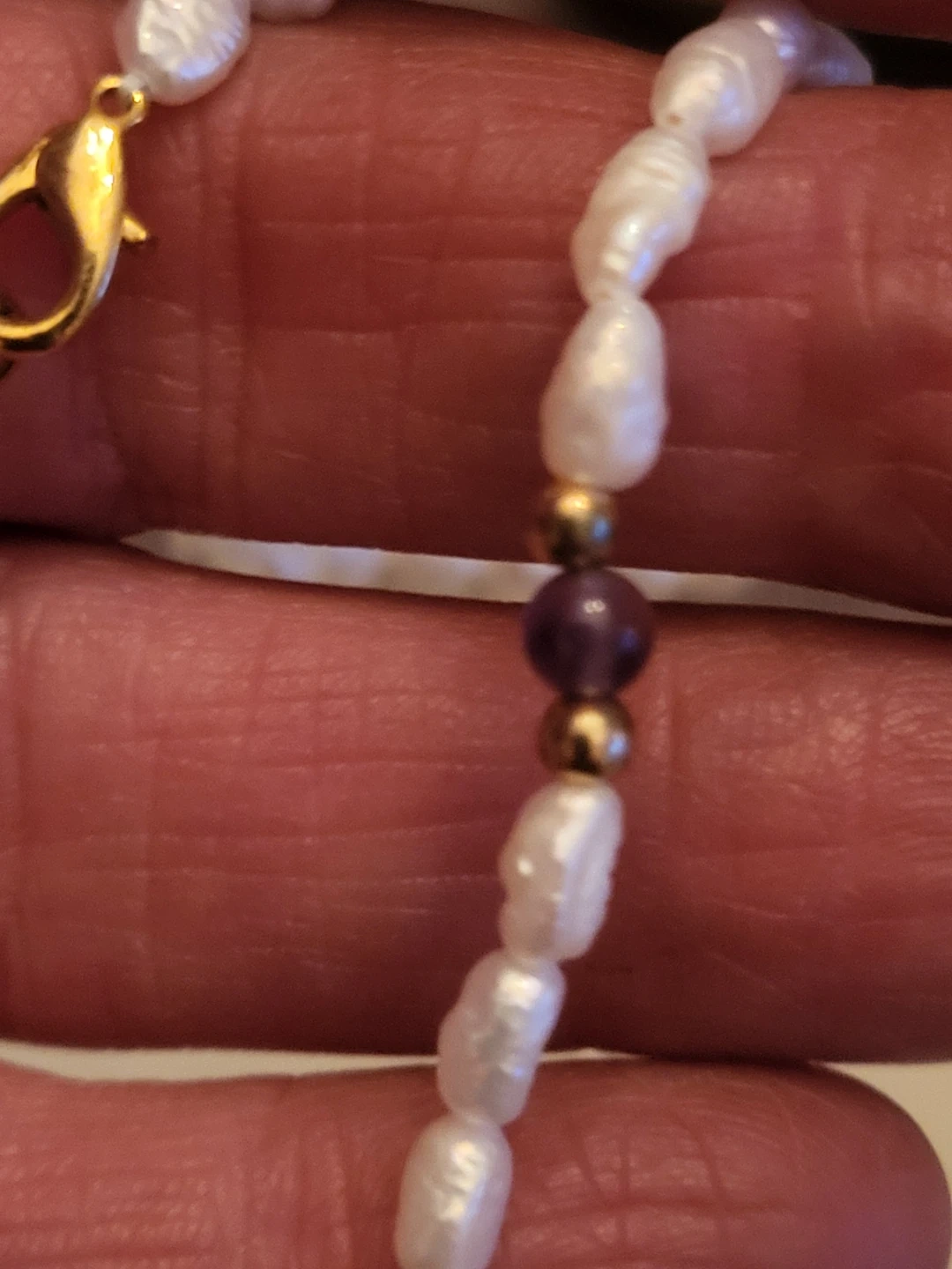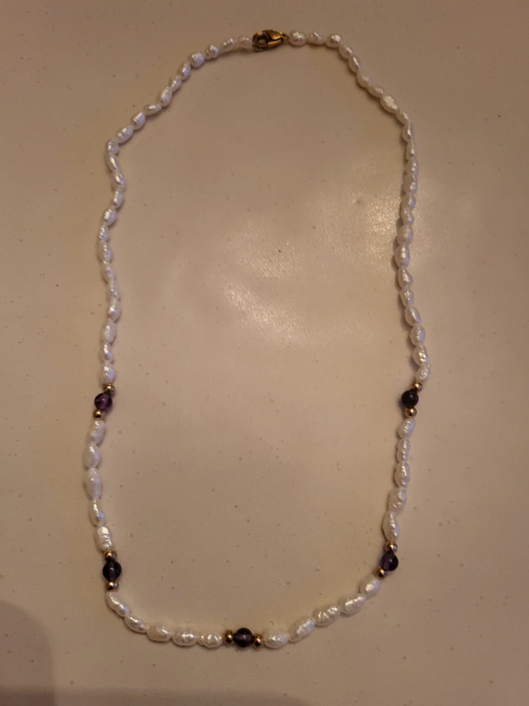 Buy & SellPearl and Amethyst NecklacePearl and Amethyst Necklace$30This necklace features irregular freshwater pearls and small amethyst beads. Gold-toned clasp closure. It's a lovely piece for everyday wear! 16"ConditionLike newSize16"WHERE TO MEETWorthingtonView MapSELLERverifiedTammyWorthington18214 reviews0 chats·0 favorites·1 viewsSEND CHAT TO SELLERHi Tammy! I’m interested in your listing.Hi Tammy! I’m interested in your listing.Get the Karrot app to chatSign In to chat