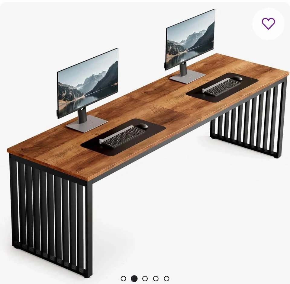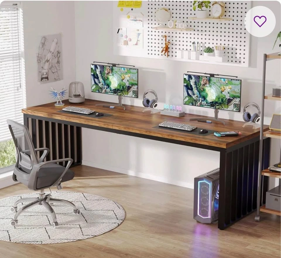 This is a new, open-box, never-used Tribesigns 78.74" Extra Long Computer Desk for 2 Person. It features a heavy-duty metal frame and a brown wood grain finish, offering a sleek industrial design. The desk measures 78.74" wide x 27.56" deep, providing ample space for two people to work side-by-side comfortably. It's versatile for home offices, study rooms, or professional workplaces, with enough room for multiple monitors, laptops, and documents. Please note that due to the materials used, the wood grain on the board may vary slightly. The price is firm.