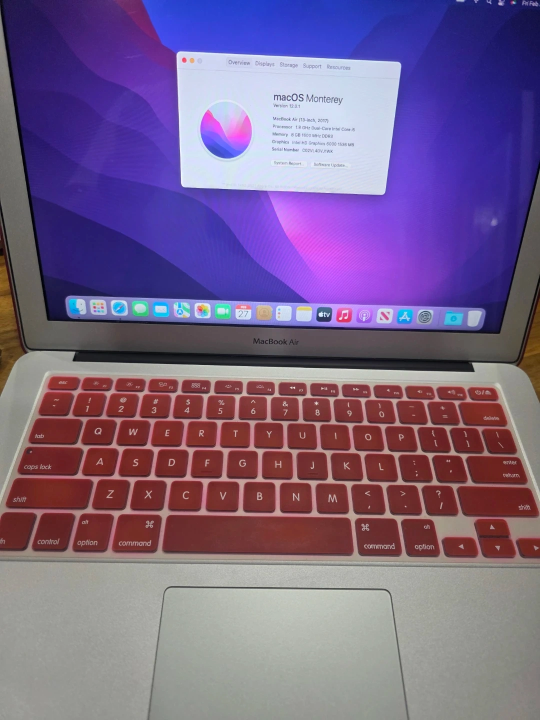 This is a 2017 Apple MacBook Air laptop. It has a 13-inch display and runs macOS Monterey. It's a 1.8 GHz Dual-Core Intel Core i5 processor with 8 GB of RAM. It's a great machine for everyday tasks!