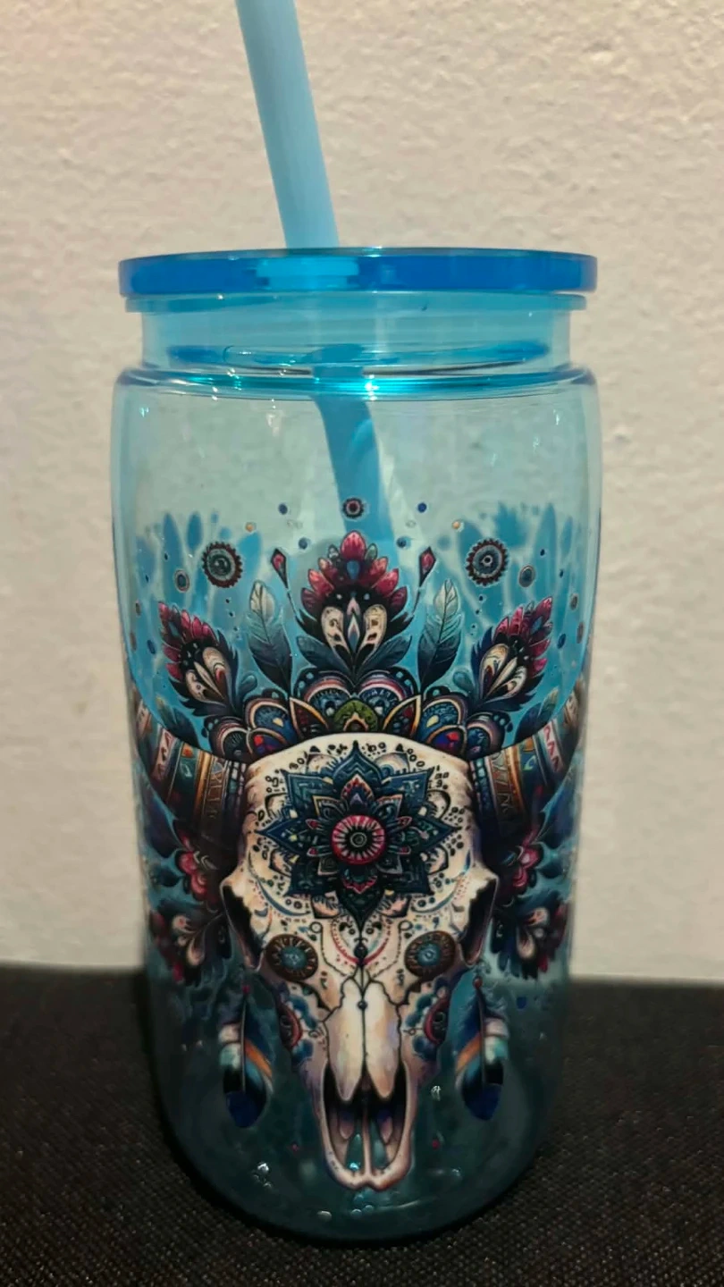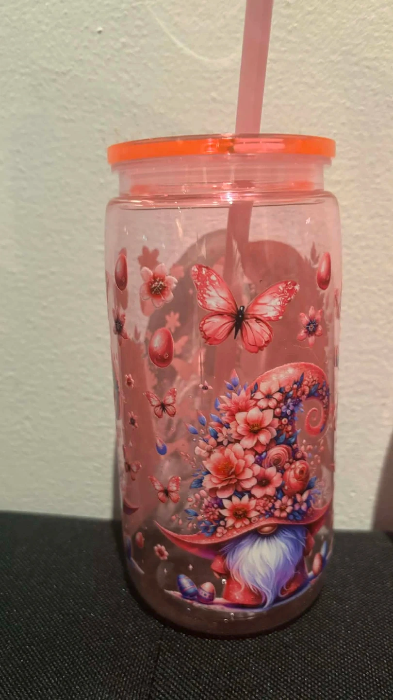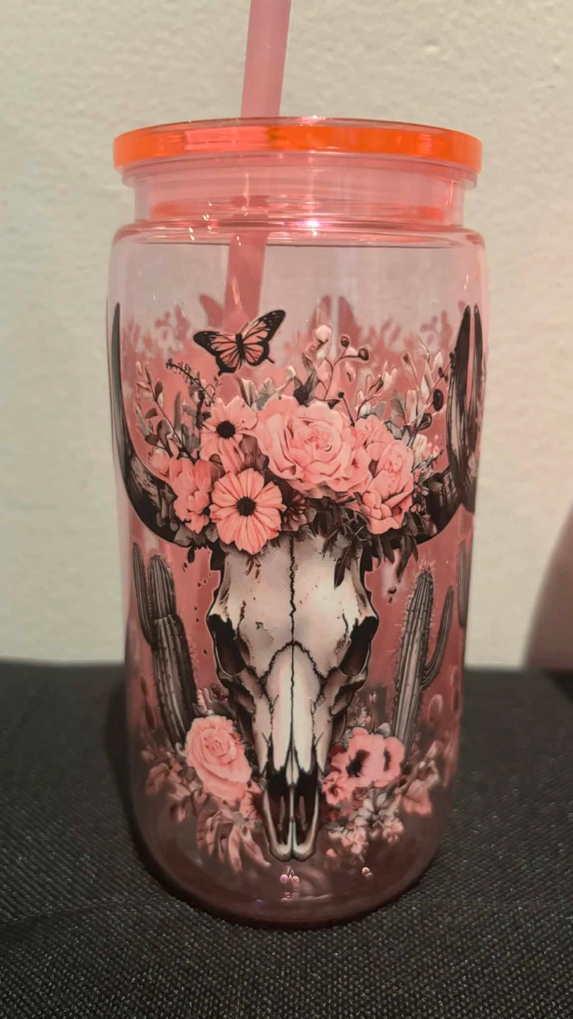 This set includes five unique tumblers, each featuring a different eye-catching design. They come with matching reusable straws and lids. These tumblers are perfect for enjoying your favourite beverages on the go! $12 dollars each