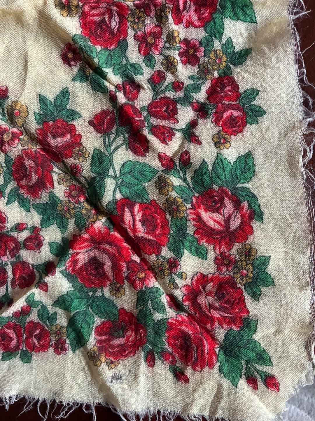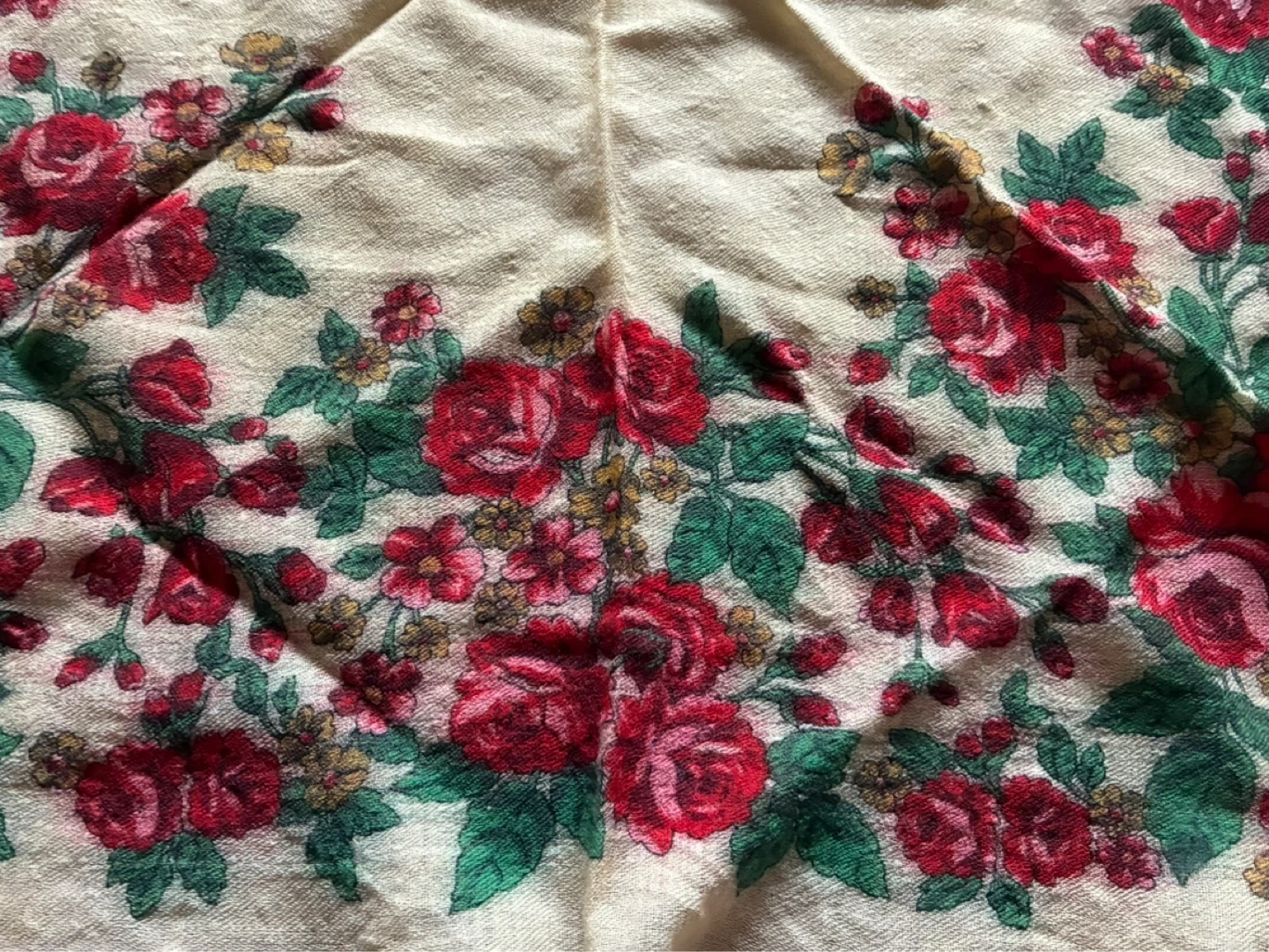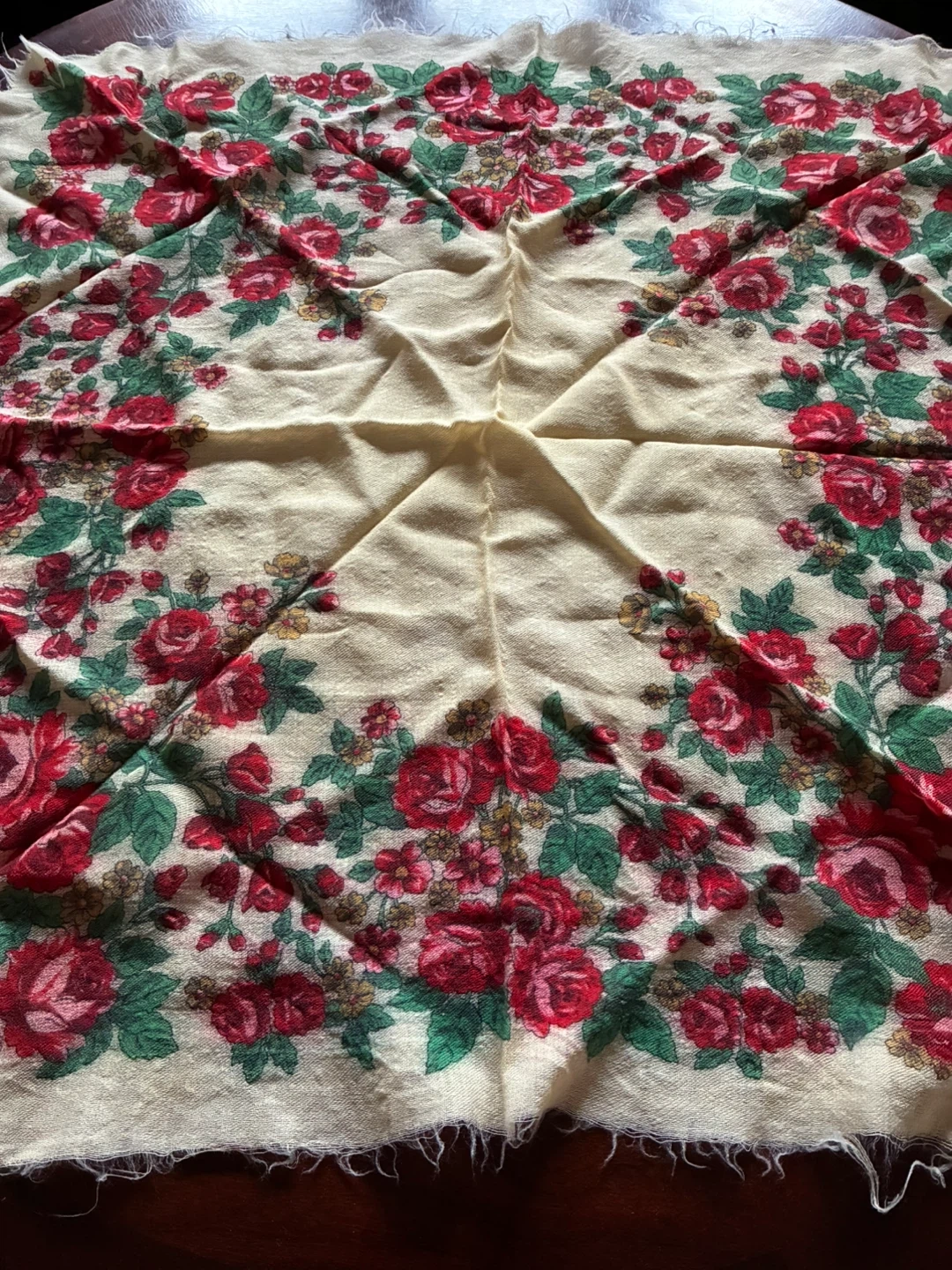 24 x 24 inch roses wool shawl, Babushka flower scarf, Vintage folk headscarf for women
