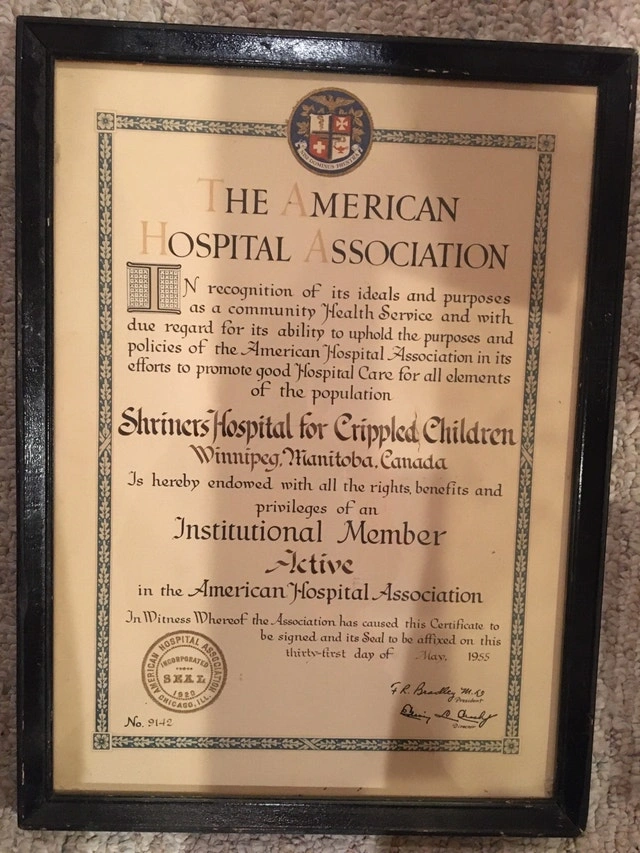 A very rare piece of Winnipeg history! The American Hospital Association endowment of the Shriner’s Hospital dated May 1955. Let me know if you're interested!