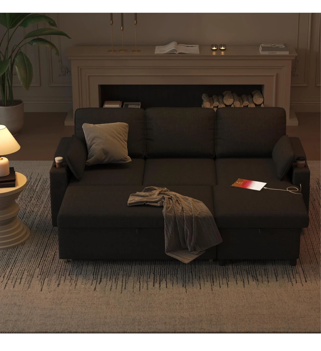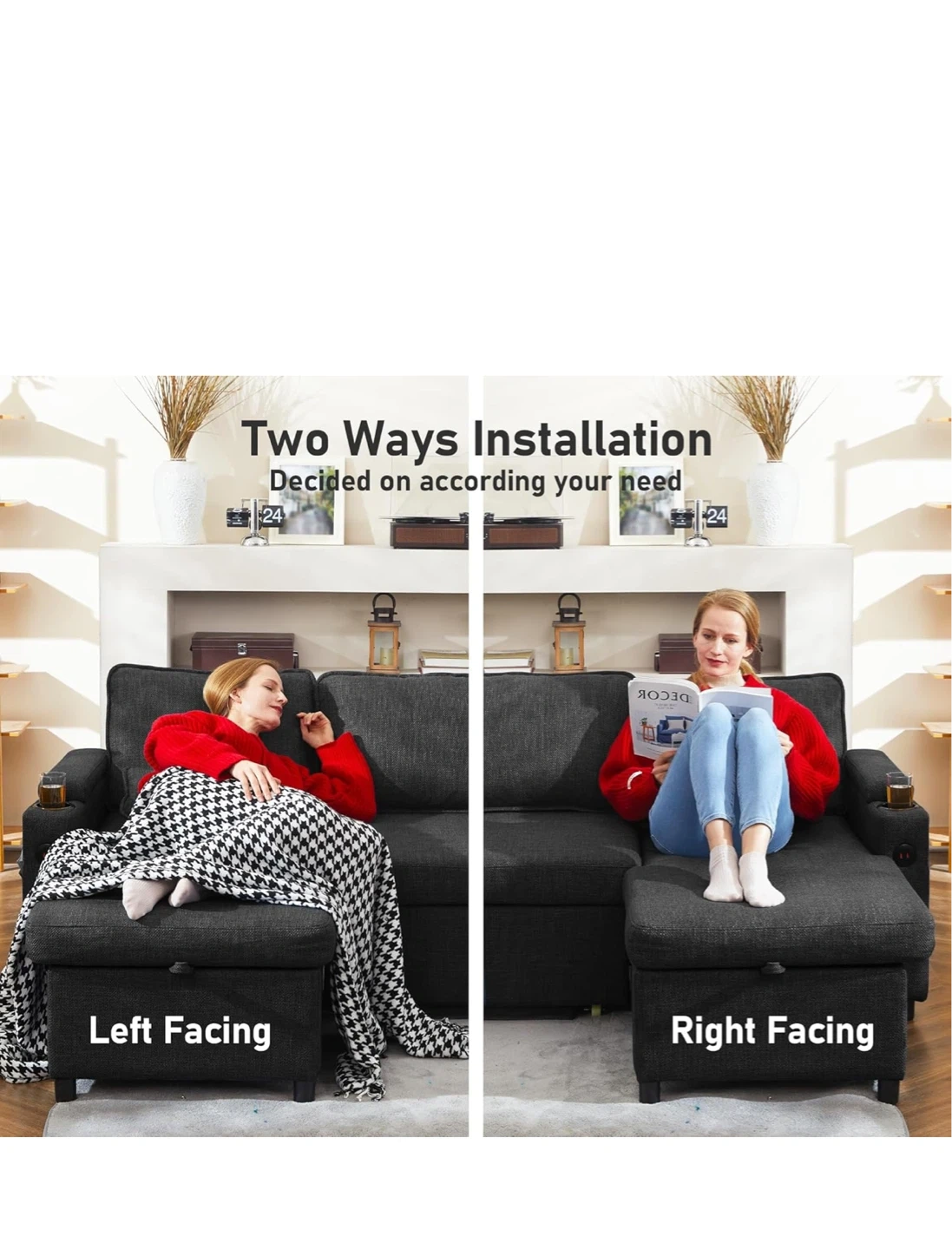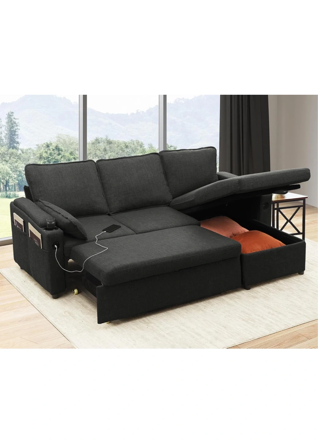 Dark Grey Sectional Sofa with USB Charging and Storage