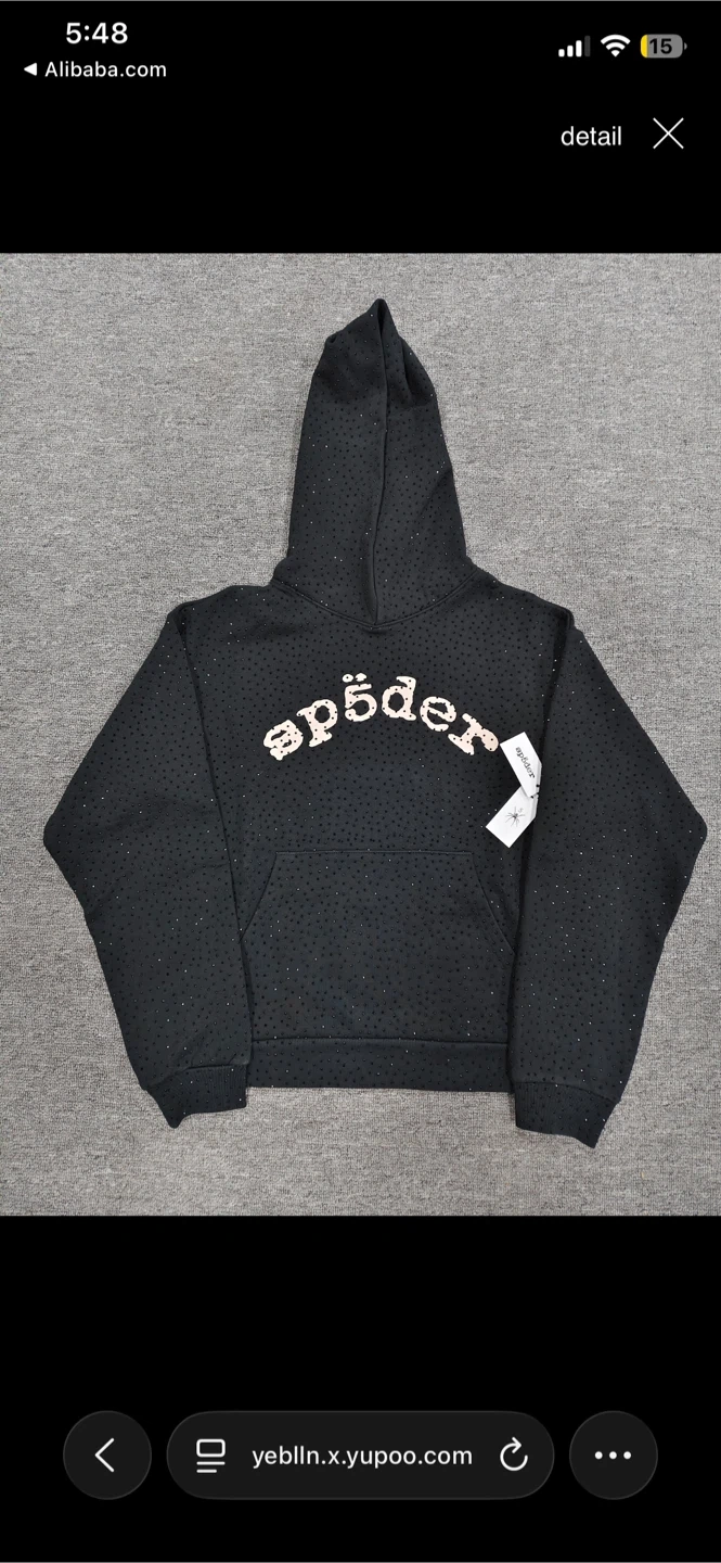 Black hoodie with the Spider logo. It's covered in small perforations with subtle glitter accents throughout. Includes original tags.medium